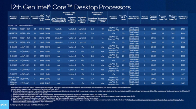【英特尔 12 代酷睿 65W 和 35W 桌面处理器正式发布:2~16 核,i9 / i7 / i5 / i3 / 奔腾 / 赛扬】