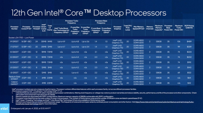 用于台式机的全新 65W 和 35W 第 12 代 Alder Lake 处理器从今天开始供货
