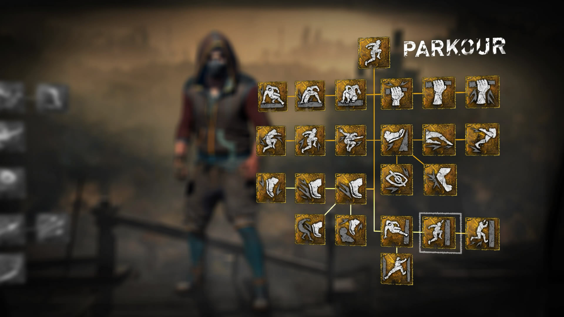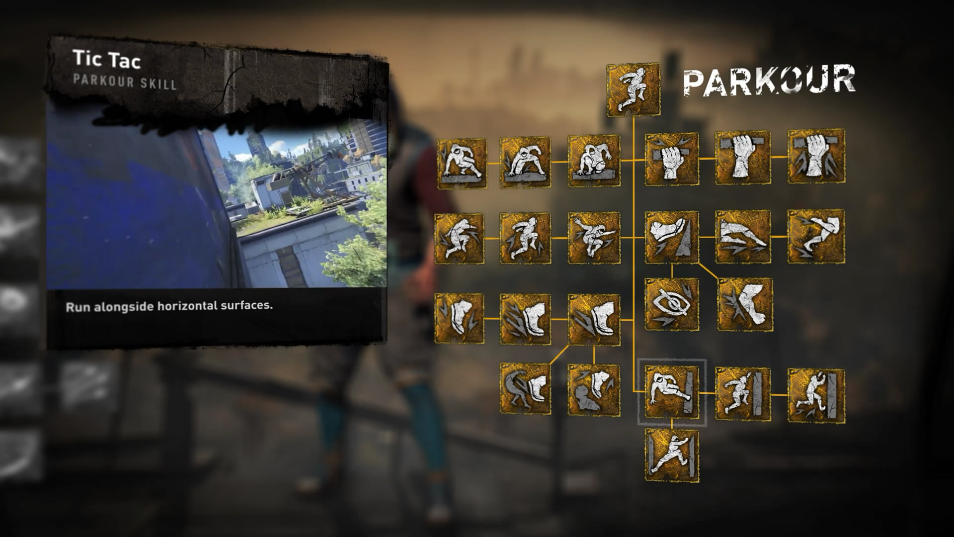 本次展示了游戏中有两种技能树可供玩家选择,分别是“战斗”和“跑酷”,玩家可以根据自己的喜好来选择加点方向。对比1代,《消逝的光芒2:人与仁之战》的技能更加丰富,其中“跑酷”技能树中的‘Tic Tac’技能,甚至可以让玩家贴着垂直墙壁奔跑,感觉都进化成忍者了,非常酷。