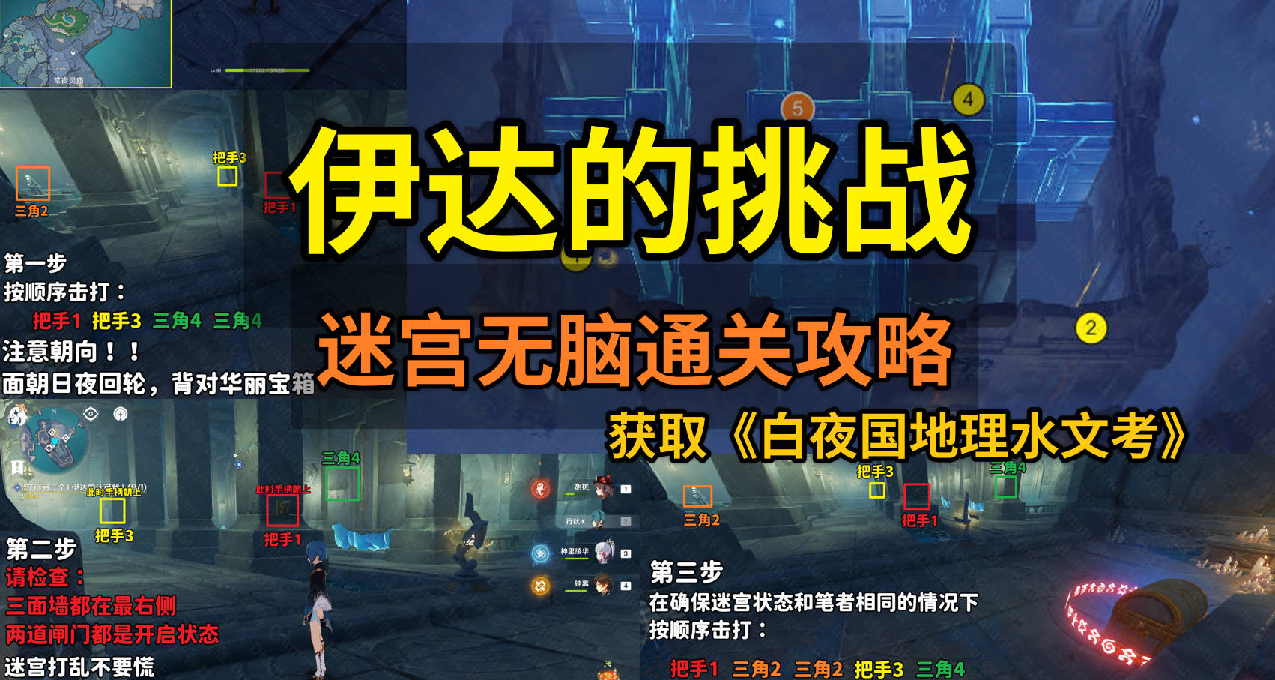 (3)在“常夜”,我们从左下角进入迷宫。触发1~4号位的水元素方碑,即可打开5号位置的天窗,通过迷宫。