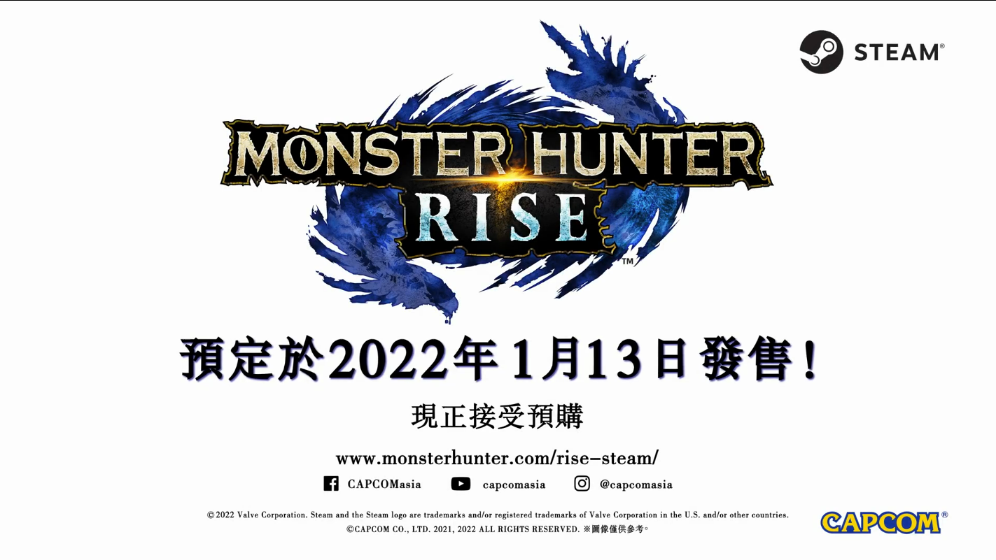 卡普空官方公开了Steam版《怪物猎人:崛起》的发售宣传片,Steam版将于1月13日正式发售,标准版396元,豪华版465元,官方目前已经开放了免费试玩。