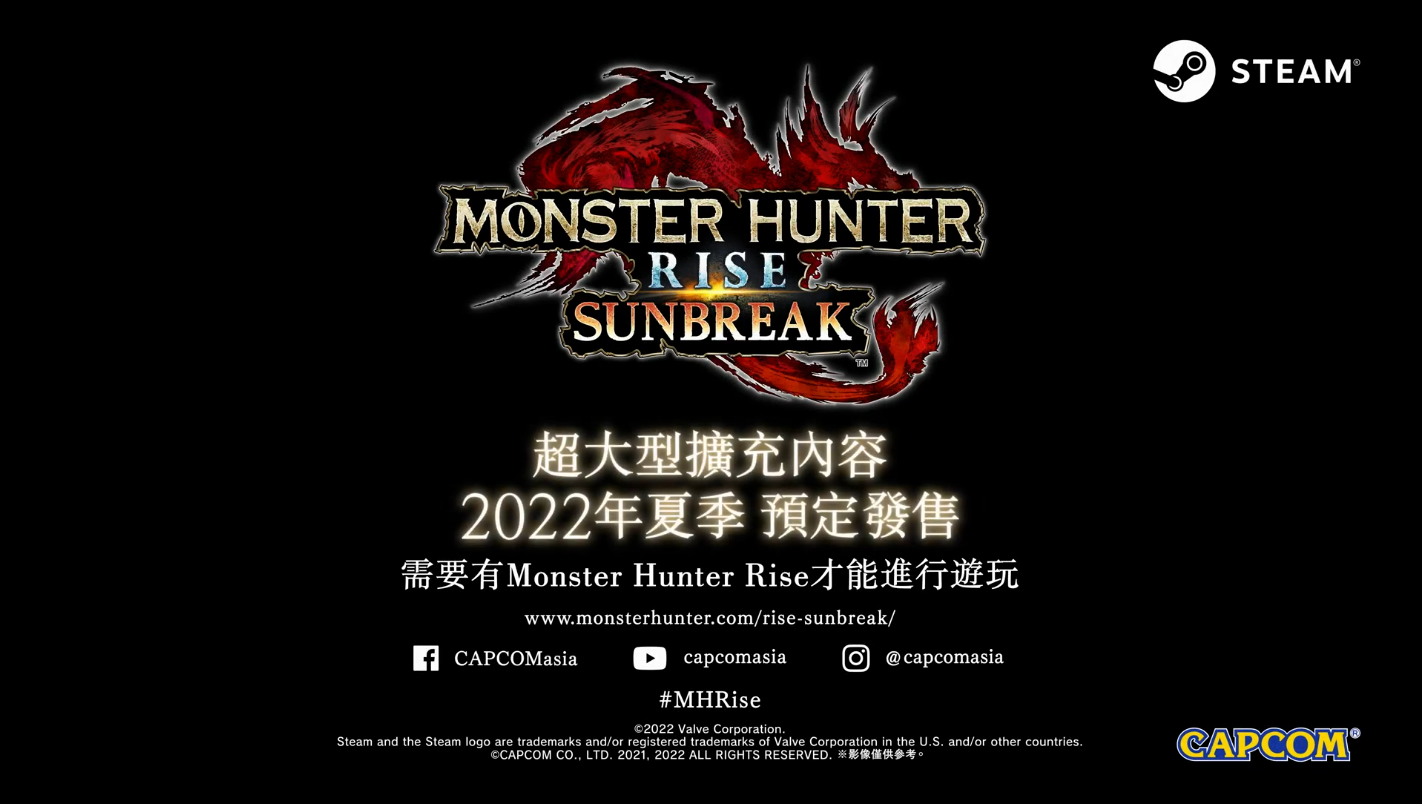 《怪物猎人:崛起》将于1月13日正式发售,DLC“曙光”将于2022年夏季正式发售。