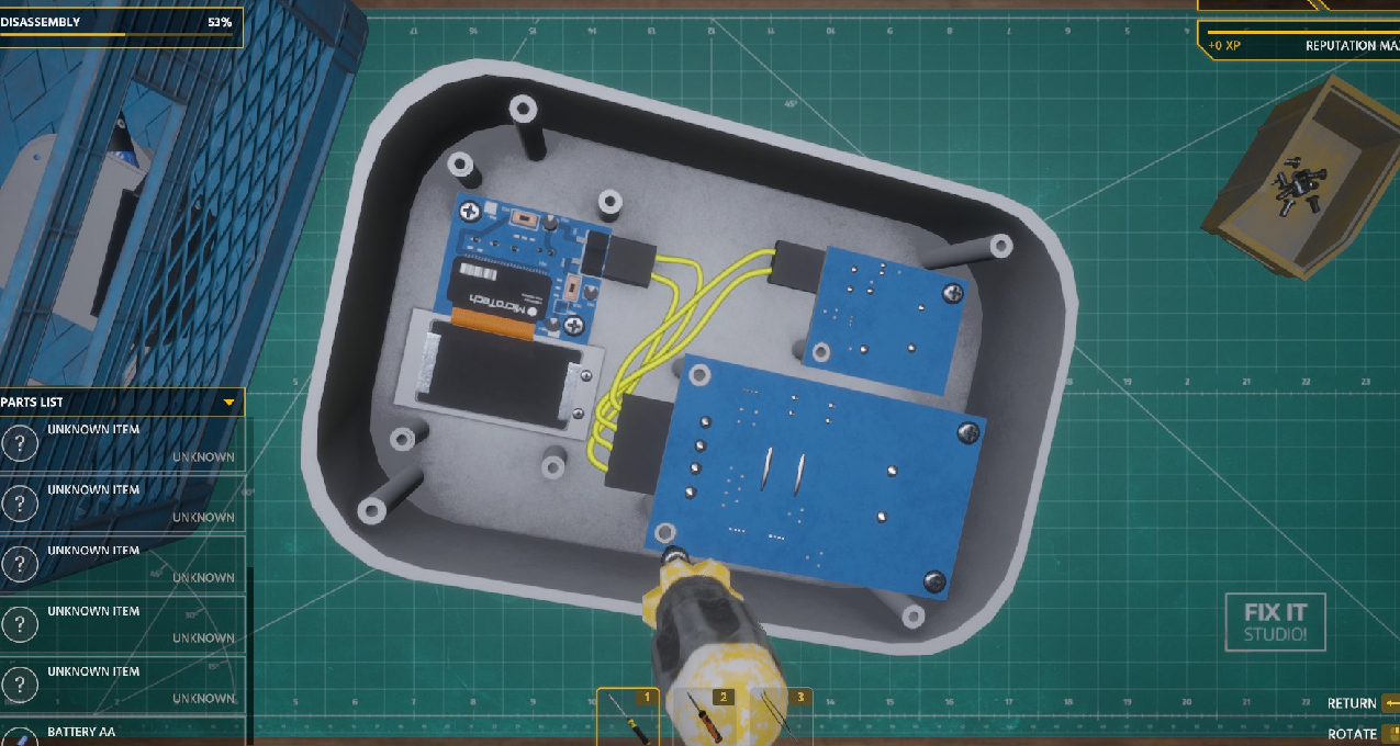 在之后的手柄维修当中,玩家只需要将手柄的零件依次拆开,然后换掉有问题的电池,再将零件组装回去,就能完成维修的委托;