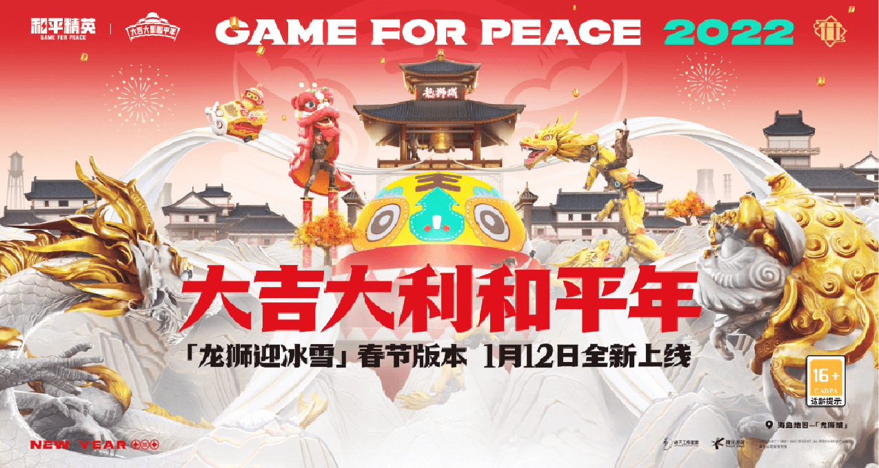 俗话说:“过了腊八,就是过年!”,伴随着农历新春的临近,《和平精英》2022开年重磅「龙狮迎冰雪」春节版本也逐渐揭开神秘面纱。在新春版本中,经典的海岛地图将迎来巨大变化—— “山顶废墟”资源点消失了,取而代之是充满了中国年建筑风貌和喜庆氛围的「龙狮城」。