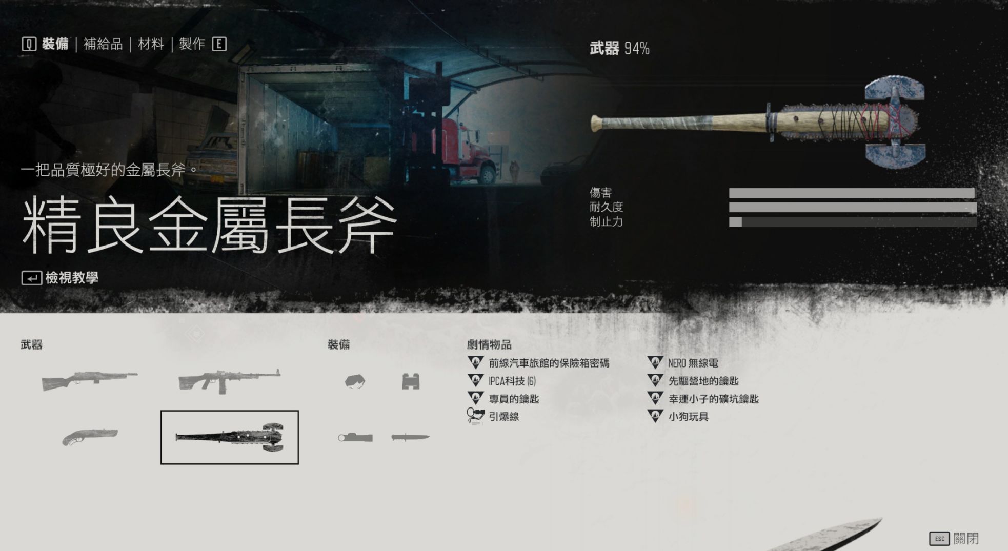 投掷类和陷阱类道具:燃烧瓶无论是前期还是后期,都需要谨慎使用,因为它是为数不多能够摧毁异变者、鬼哭种巢穴的东西;碎片弹、管状炸药等手雷型物品用在具有相当规模的尸群中最为合适。