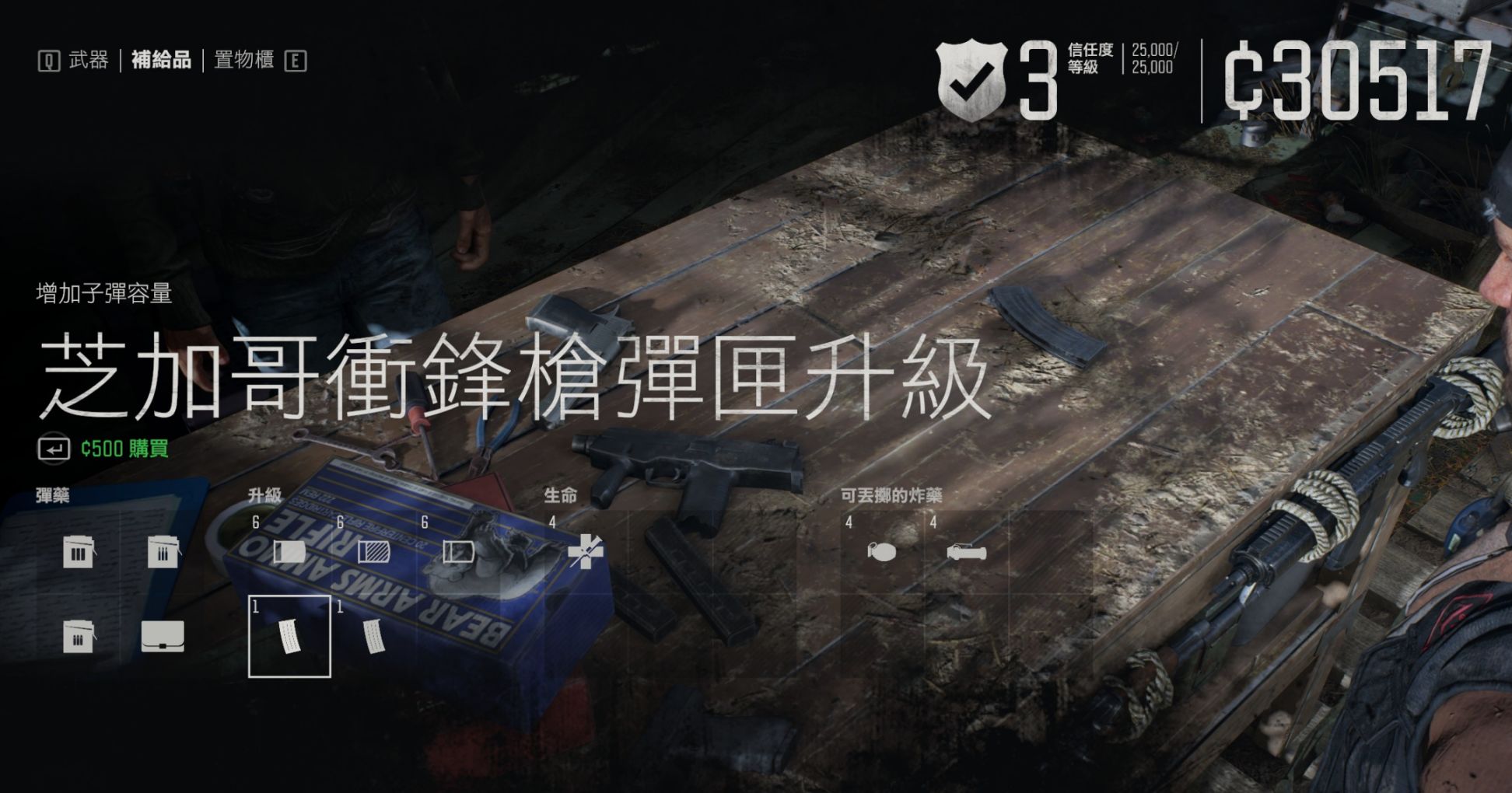 在一些大型战斗(消灭掠夺者营地)中,敌人的地盘往往会有弹药补给,通常它们会放在瞭望台(处)狙击手的脚下,又或者是敌人营地的某个铁皮桶上,总体来说,子弹和汽油都能实现自给自足。