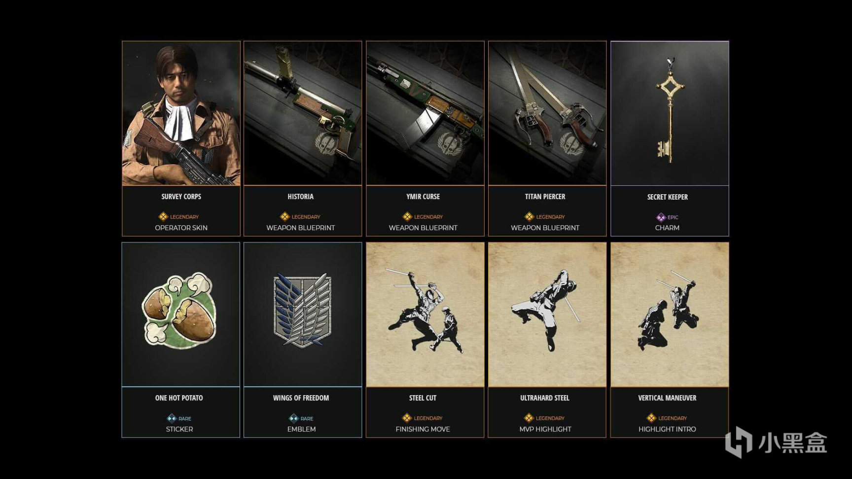 此次更新将包括一名新干员、一种新武器、僵尸的额外内容、各种错误修复等。在《进击的巨人》捆绑包,其中将包含10件物品,包括角色皮肤、武器蓝图、挂件、喷漆以及MVP动作等。其中更是包含了动漫中经典的“美工刀”近战武器,斩杀巨人的钢刃和处决动作;“尤弥尔的诅咒”突击步枪和“希斯特利亚”冲锋枪,这两种枪支是玩家在这两款游戏的多人模式和僵尸模式的绝佳补充。此外还包括自由之翼徽章;“一个热土豆”贴纸等等。以及两个成就。
