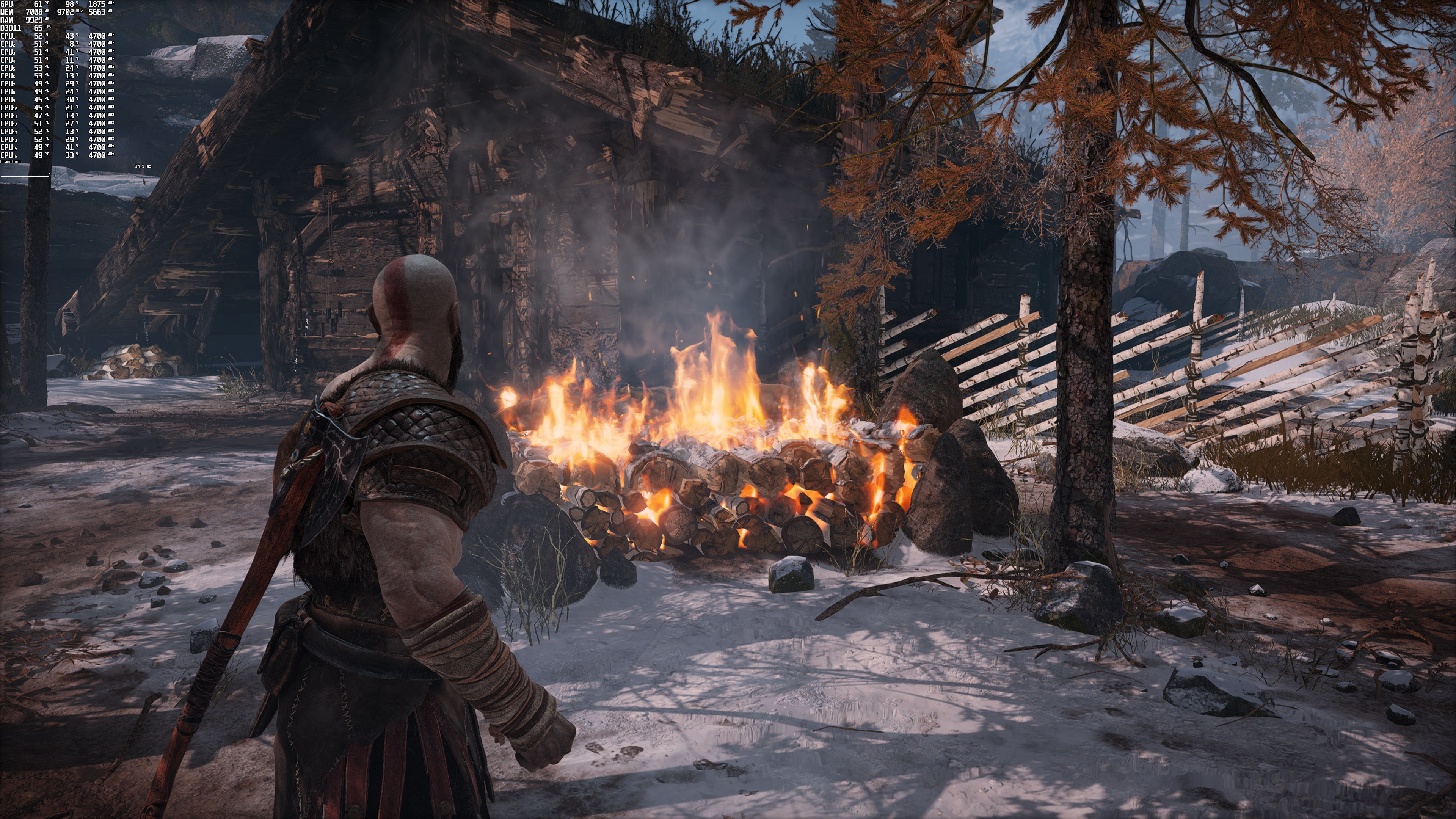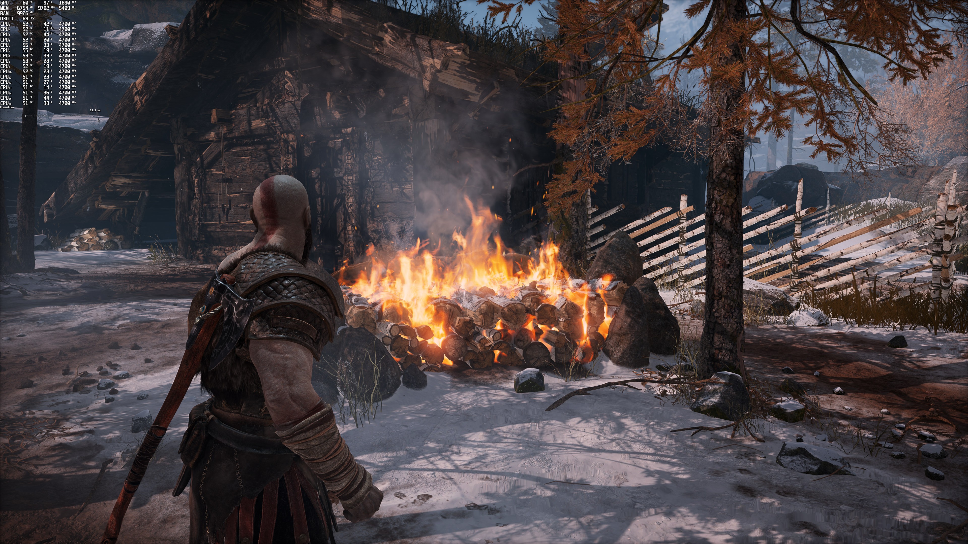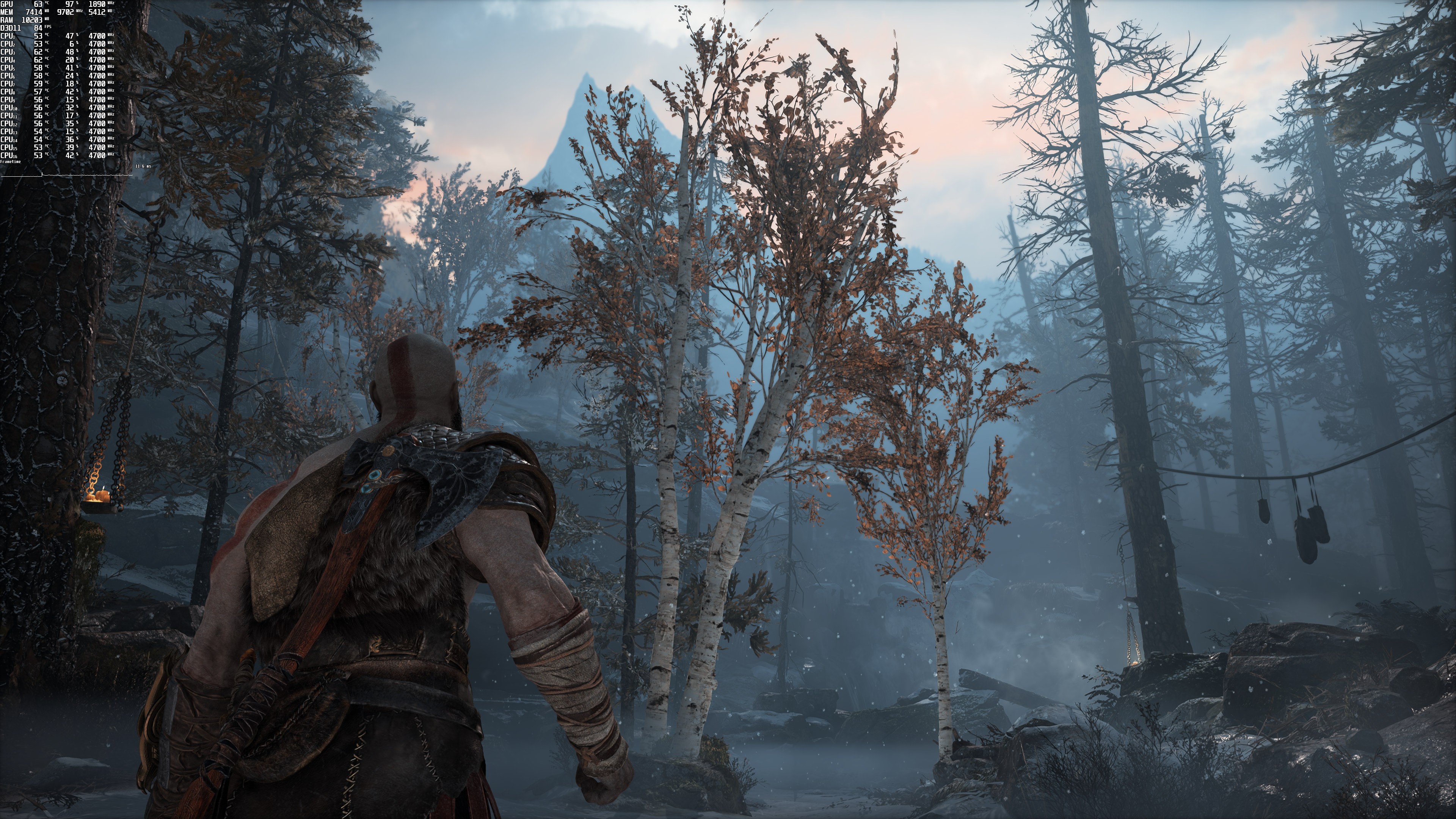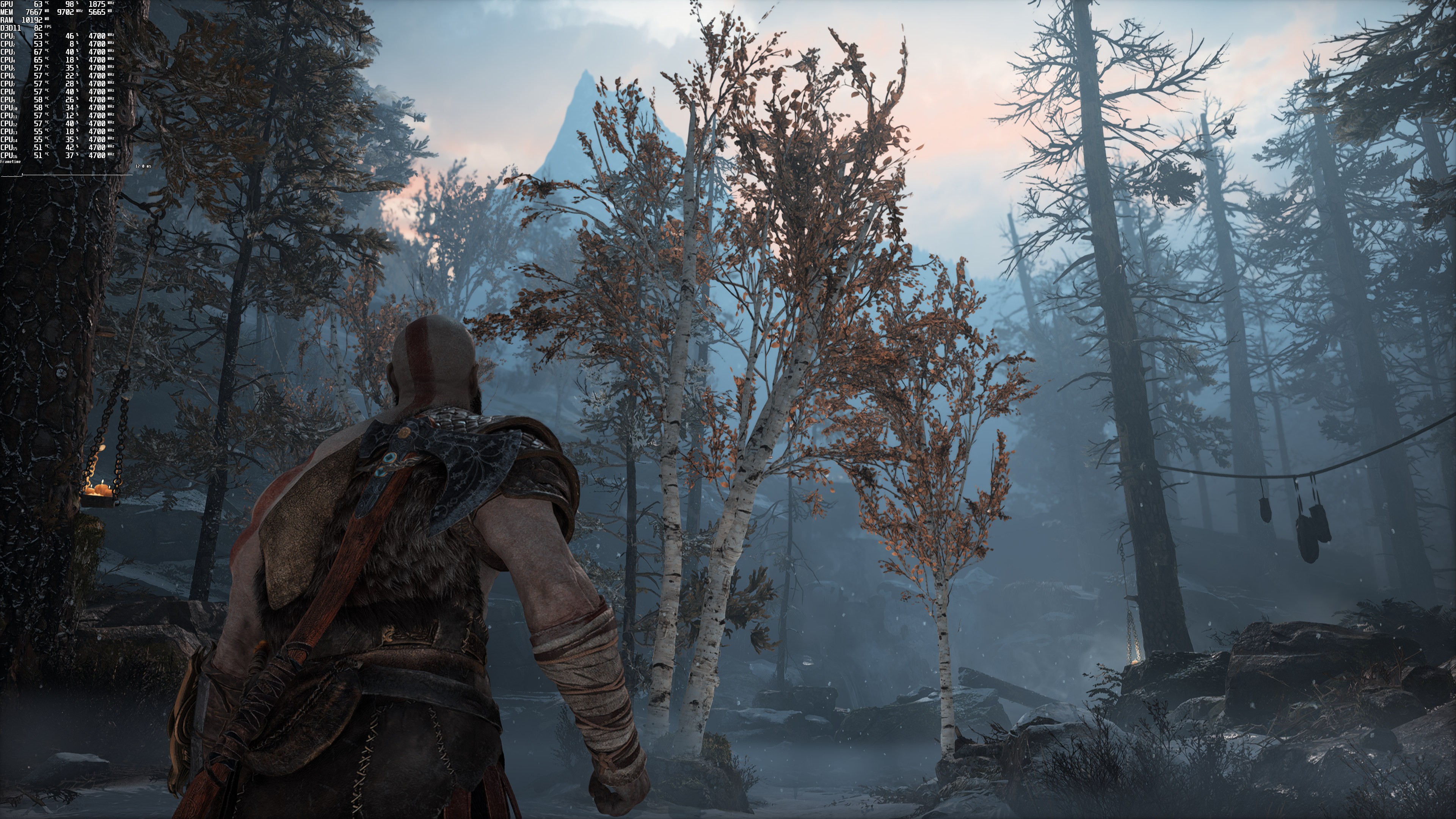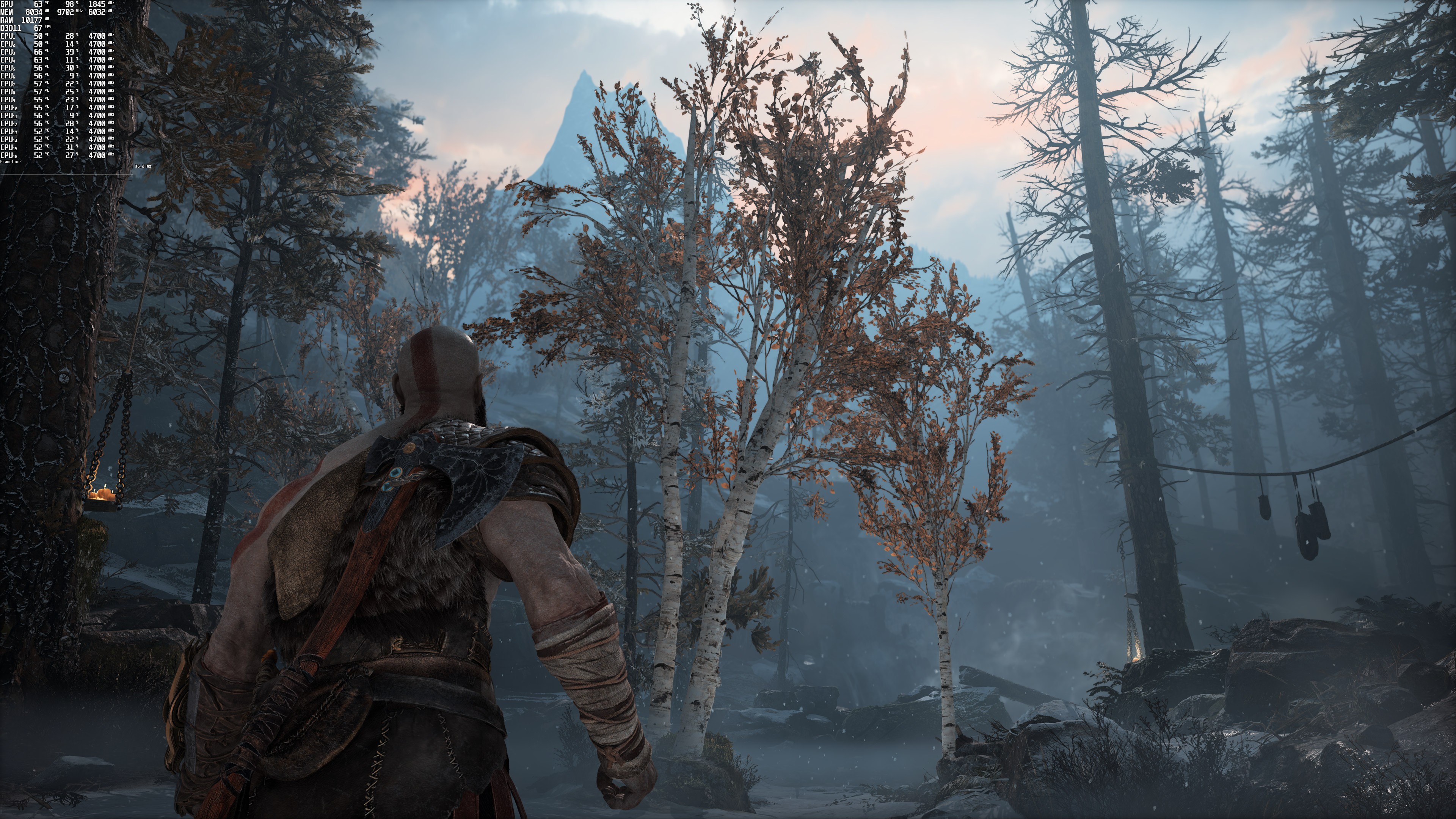 本次测试Dsogaming使用了Intel i9 9900K、16GB DDR4、3800Mhz和 NVIDIA的 RTX 3080、GeForce 497.29驱动程序。《战神》没有任何内置的基准工具。因此Dsogaming采用了奎托斯和阿特柔斯开始猎鹿的时刻作为基准场景,因为这个区域有很多体积效果,似乎比之前的所有场景都更吃GPU。