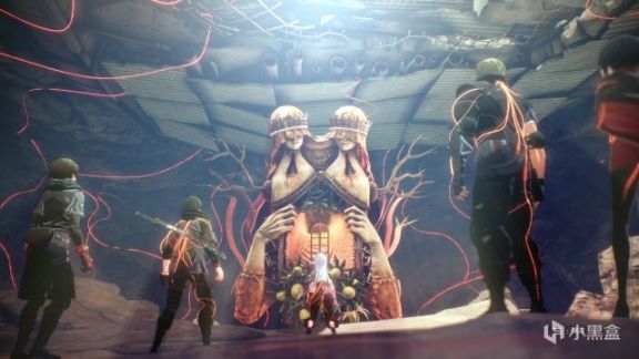 整体上《绯红结系》的战斗系统处于一个“渐入佳境”的状态下,尤其是在两队合并后这个特色更加明显——无论是加速复制状态下的“法师”体验还是霸体心眼燃烧状态下的狂战士玩法,总有一款会适合你。但问题在于,本作其实并没有能够好好利用这样一套战斗系统,除了相当简陋的战斗关卡设计——在流程上几乎全是千遍一律的画地为牢然后打怪以外,原本在艺术设定上非常抓人眼球的“怪异”在实际的战斗流程中所呈现出来的戏份却非常的少,游戏中罕有让人印象深刻的“怪异”BOSS。