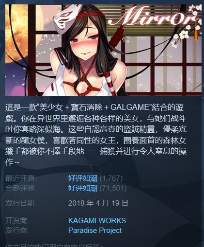 美少女三消游戏续作《魔镜2(Mirror 2: Project X)》原计划1月28日发售,而今天官方宣布:应广大玩家呼声,将会提前一星期发布。1月21日就可以玩啦!