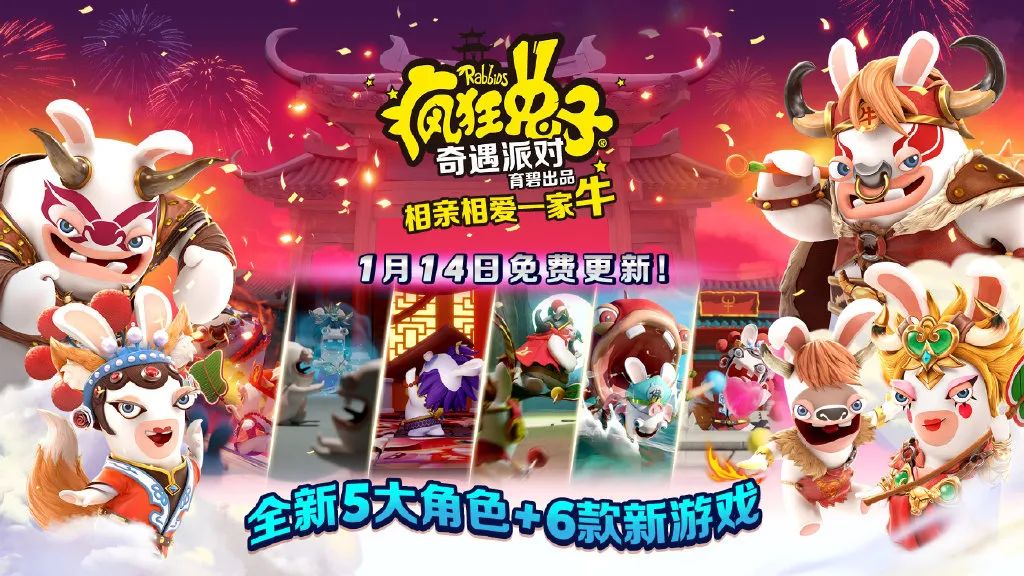 本周早些时候预告的,国行版Switch主机独占游戏,《疯狂兔子 奇遇派对》免费DLC“相亲相爱一家牛”现已推出,内容包共包含: