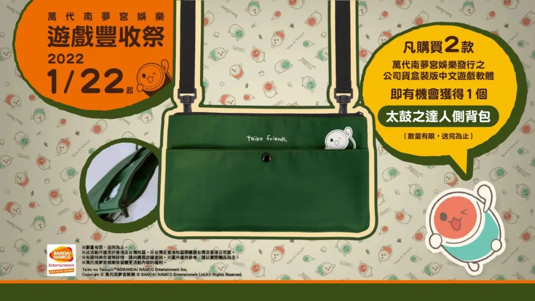 1月22日开始,在港台地区购买两款万代行货Switch游戏的玩家,有机会获得一款太鼓达人主题侧背包。