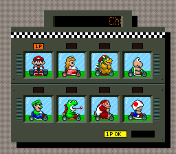 回到SFC平台的《超级马里奥赛车》,从画面表现上来看,本作的画面虽然年代感很重,但仍然很精美,尤其是本作萌萌的小马里奥形象很招人喜爱,提供的地图又风格各异,游戏为玩家提供了8位不同的可操纵角色,而且这些角色的设计的手感也有细微的差别。