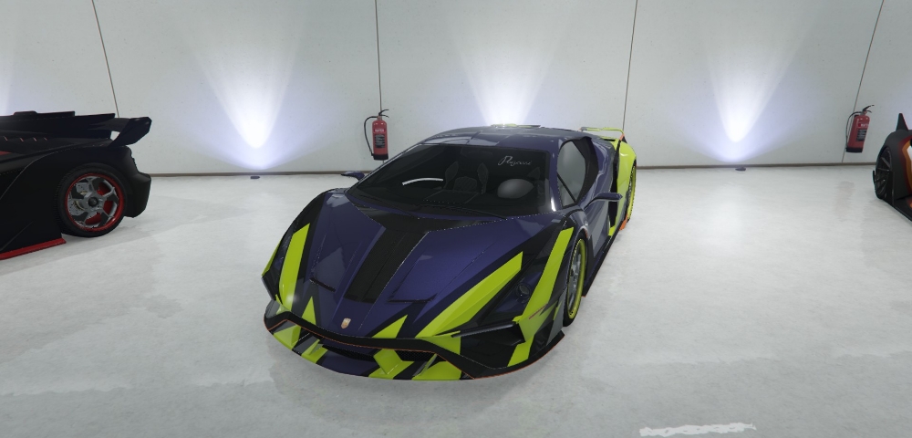 相信各位小伙伴已经在开着在合约中更新的超跑-伊格纳斯,穿梭于洛圣都街头了吧。在伊格纳斯的改装中有这样一款涂装,与eva中的初号机相似。下面就带大家看看具体的更改选项