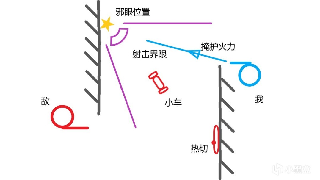 把邪眼下方的hatch喷开,对方不论是走近还是丢手雷都非常困难。