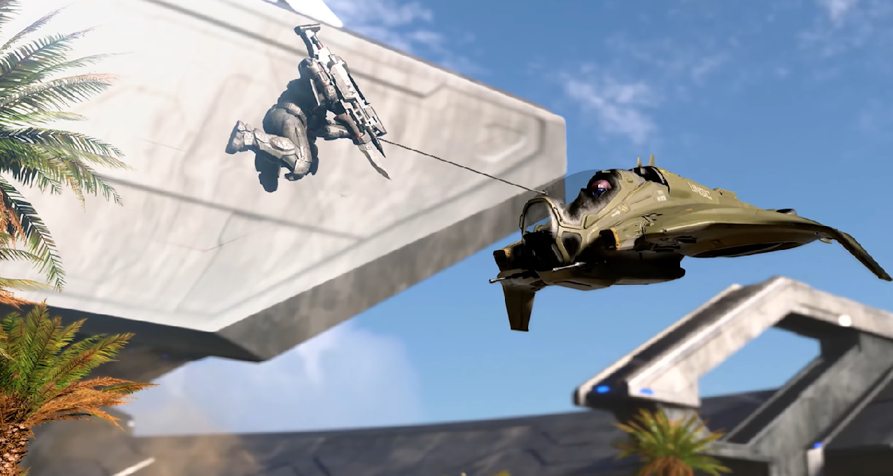光环无限中一位四期斯巴达肩扛穿刺戟准备劫持胡蜂号