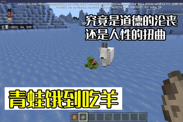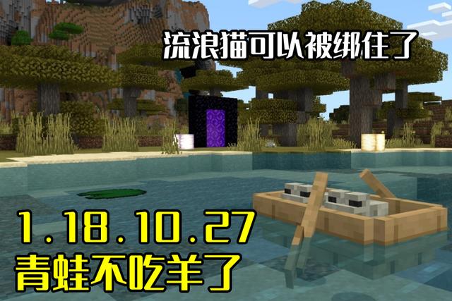 但你以为这就结束了?在这个26版本,同样隐藏着一条非常“生草”的特性,“MCPE-151536”,青蛙能吃山羊。或许这不能叫普通的青蛙了,而是它的史前先祖,魔鬼蛙,考古学家推断,这种与恐龙同时代的生物,饿起来甚至还可以吃下霸王龙的幼崽。