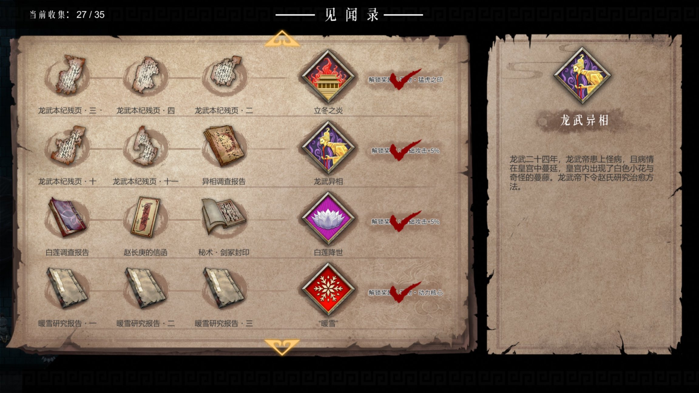 尽管在本作充满着国风气息的类似皮影的开场动画中对于背景进行了简单介绍,但主干上的枝叶却散落在游戏各处,在游戏中击破怪物掉落,或是藏在了某个关卡的角落,而这些收集物不仅仅是解锁圣物的道具,也隐藏着本作游戏剧情的真相与细节。