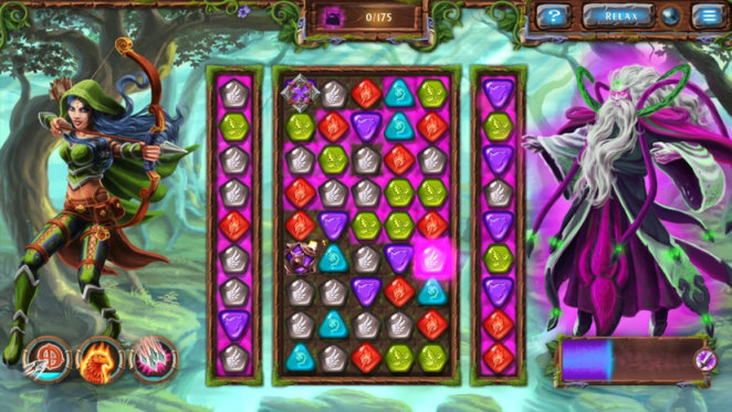 玩法:游戏采用三消的游戏玩法,玩家通过消除方块♦️合成法术方块(链石、炸弹石头)击毁敌方的邪恶力量boss(刺皇后、吸血鬼、幽灵、沼泽地树、巫师)解救村庄,驱散藏匿于黑暗中的恶灵。