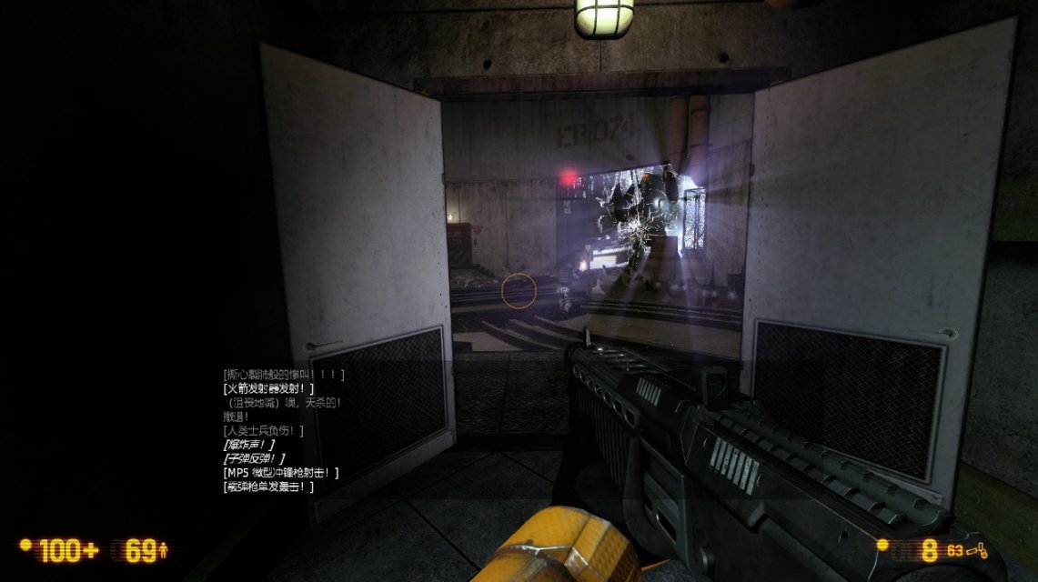 为玩家回血和给HEV充电的面包变得更加立体了,甚至还加入了原版没有的液体细节。手电筒和原版游戏一样照亮的范围很小,不过可以一直开着手电筒,不像原版一会就关闭了。旁边的厕所隔间里有一个因为“突发情况”而困住了的科学家,我们终于可以将卷纸拿起扔进去了,在实验失败之后再去看看他,会有惊喜的。尽管整个实验室和原版几乎一模一样,但由于“高清化”看上去却焕然一新,实验开始之前还会遇到熟悉的克莱纳和伊莱博士亲切地打招呼,两位好朋友,在《半条命2》里也帮了我们不少忙。就像是预定好了一样,实验失败,粒子效果十分绚烂,实验室里十分凄惨。