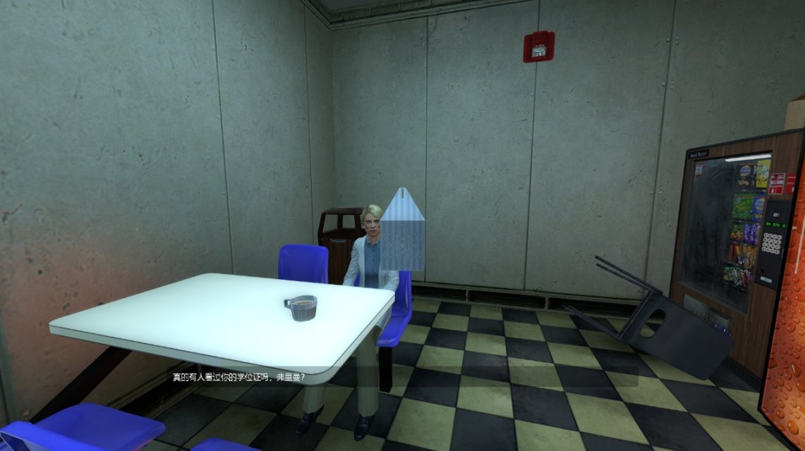 进入实验室的内部,里面的玩梗特别多,当然也要珍惜,因为这是唯一一个可以看到大量友好NPC的场景了。十分熟悉的感觉,经过了那么多年,前台的布局看上去还是没有多大的改变,中间一个操作台,熟悉的科学家站在保安旁边的场景,并且电脑下面的紧急按钮还是可以按!像个熊孩子一样按下去然后被保安指责,最后保安又被上级领导职责,玩家操控的戈登永远长不大。科学家的模型变多了,而不像原版《半条命》只有三种模型,看来看去就只有那三张脸。与其中一名科学家对话,他竟然说出了“你就得等我实验结束”,这句话的翻译也很好地保留了台版翻译,虽然是英文配音,但我脑海里已经可以想象出原版台湾腔的配音了。