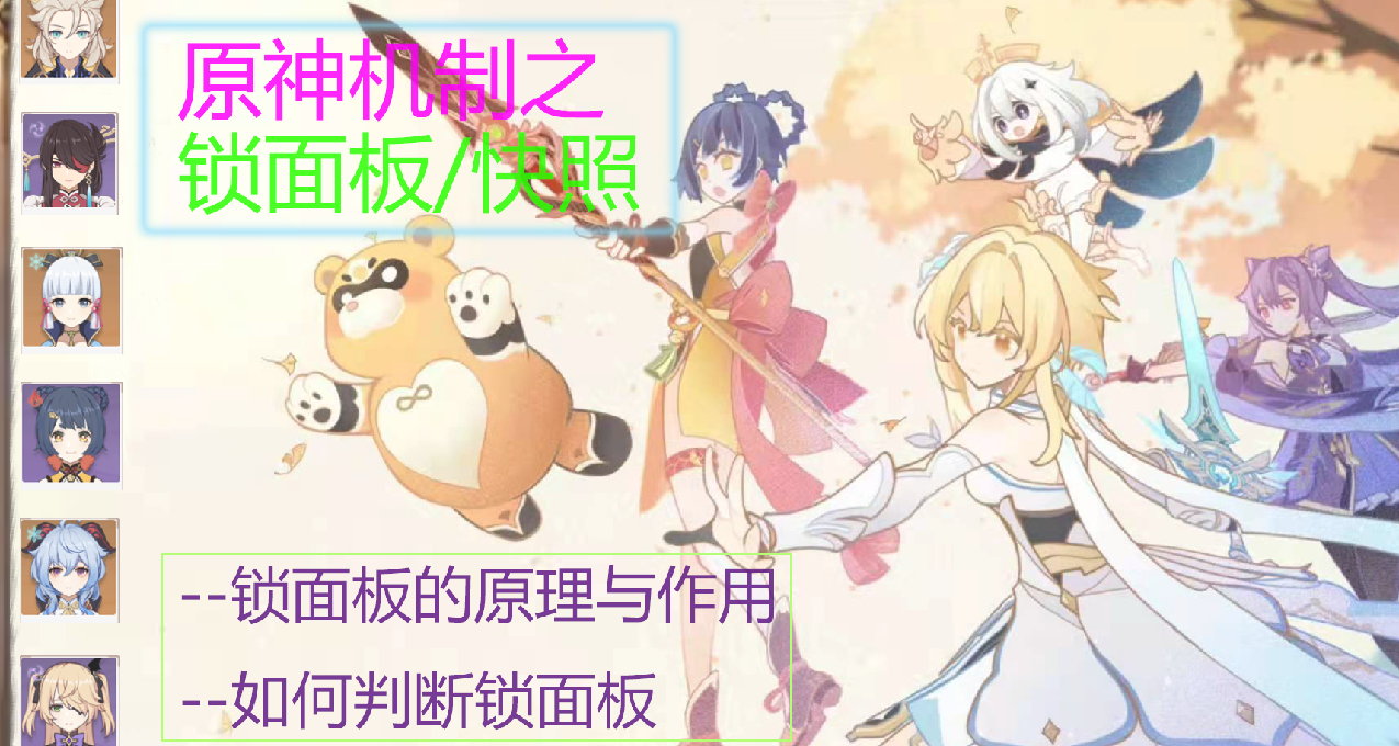 之前也有说到,锁面板可看成是召唤物或是分身之类的。所以角色的召唤物攻击,基本都具有锁面板的特性。如神里大招,放出霜见雪关扉攻击;甘雨大招,召唤冰灵珠攻击;北斗大招,召唤雷电攻击;心海和莫娜的E技能,召唤水形态拟物攻击;以及所有具有持续伤害能力的岩造物、嘲讽物或其他召唤物等等,都是能锁面板的。