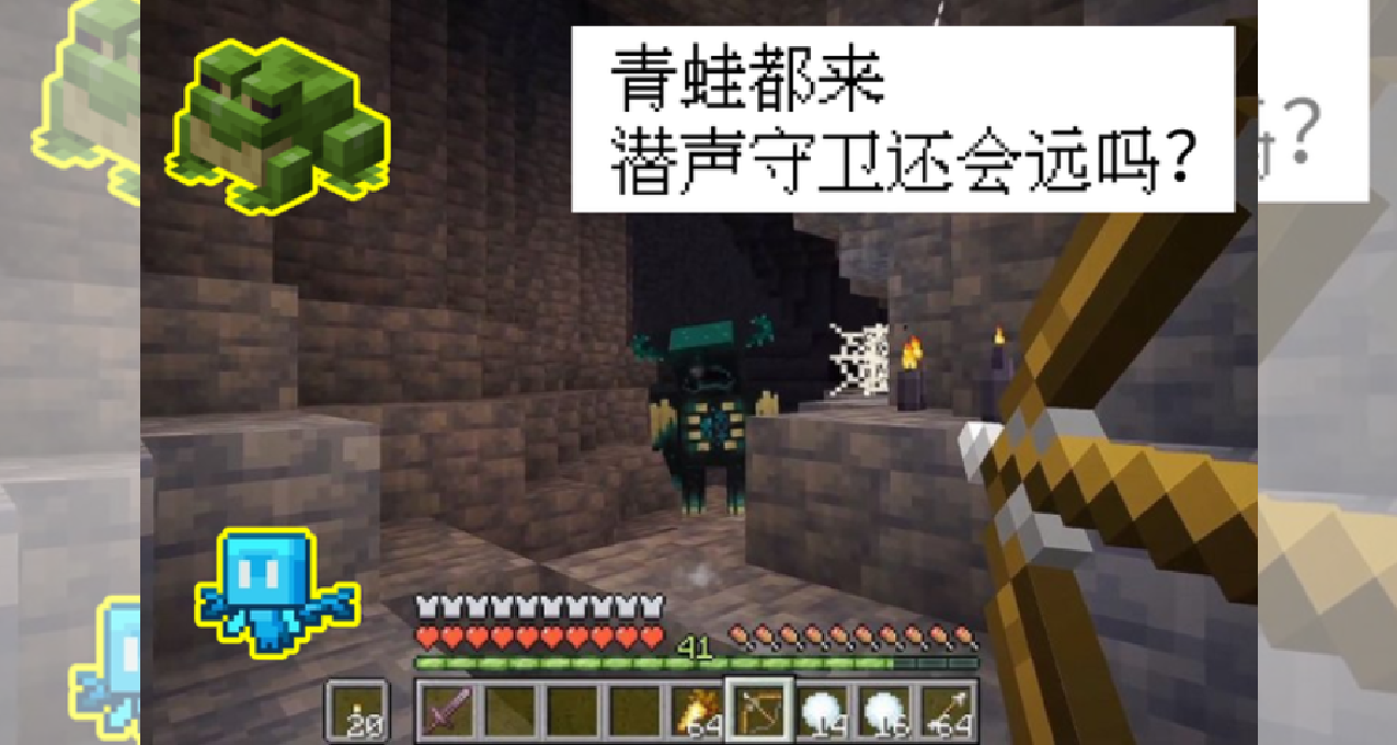 对了,既然1.19青蛙都来了,潜声守卫会不会是下一个更新的游戏版本的主要内容呢?根据此前的猜测,BE更新沼泽,JE更新洞穴,青蛙已经在BE出现了,更何况此前有关于潜声守卫的制作其实都已经算是大致完成,只是还在不断完善它的生物AI,毕竟如果能搭3格就能轻松击败它,它也就不值得玩家等待这么久了。##我的年度关键词#我的世界#