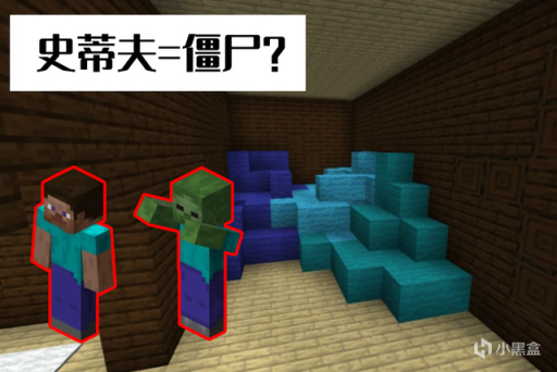 还记得林地府邸的羊毛房间吗?对,就是那间只有堆满蓝色、淡蓝色、和青色的羊毛方块的。如果你对这些颜色有足够大的反应,说明你已经和GW所想的一样——好家伙,这不就是僵尸、史蒂夫身上衣服的颜色吗?