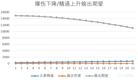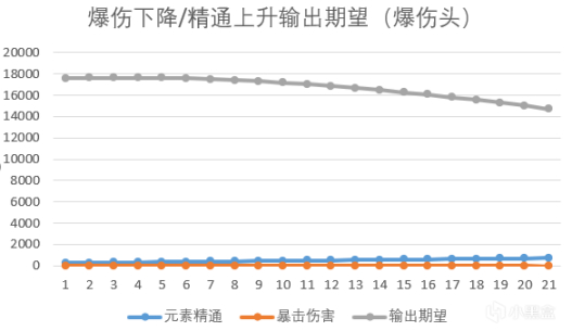 伤害期望几乎是十分顺畅的在往下降低,因此在不带爆伤头时,爆伤的优先级大于元素精通。