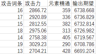 在伤害期望前十名的数据中,最大攻击力词条数是三,说明在最高伤害期望中,攻击力相比暴击和爆伤劣势明显。