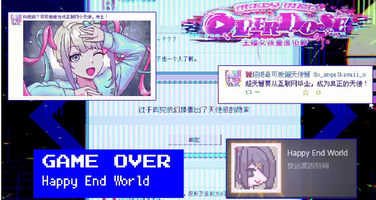 我在这里并不像对元宇宙的愚蠢做出过多批判,还是回到游戏来说,以游戏为主。我们真的知道自己想要的是什么样的生活吗?游戏里的糖糖通关当主播,收获粉丝,希望的是得到更多人的认可,这种心理其实出现在现实中的很多人身上,不过大多数人都不能想游戏里一样满足自己的诉求,只能在网络世界中盲目地行走,最后走累了,也就没有什么幸福可言了,所以游戏中有那么多的BE,HE却只有一个,我想这是非常真实的。”