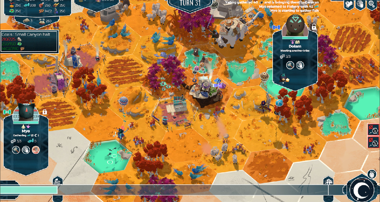 你将扮演风,指引部落学生们到达世界的中心。你必须帮助他们管理资源,建筑物,以及他们的生活。在世界被淹没前,通过种植业,手工业,以及科学和神话研究增进他们的智慧。值得注意得时,你需要运营你的族人,确保他们免受饥饿困扰,以及被水淹没时得不知所措。这款游戏是一个基于回合制的游牧城市建造游戏。开始一个程序生成的旅程,在一次又一次的艰难困苦中生存下来,直到世界的中心。