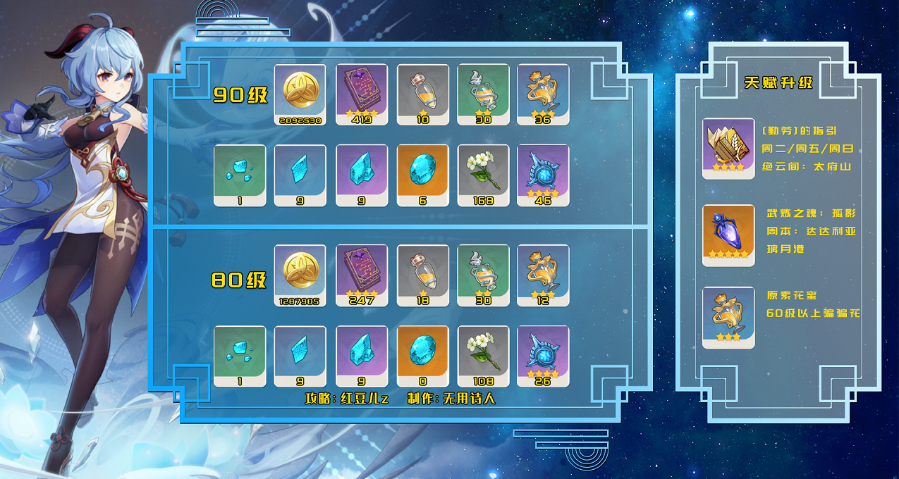 1.甘雨突破素材一览