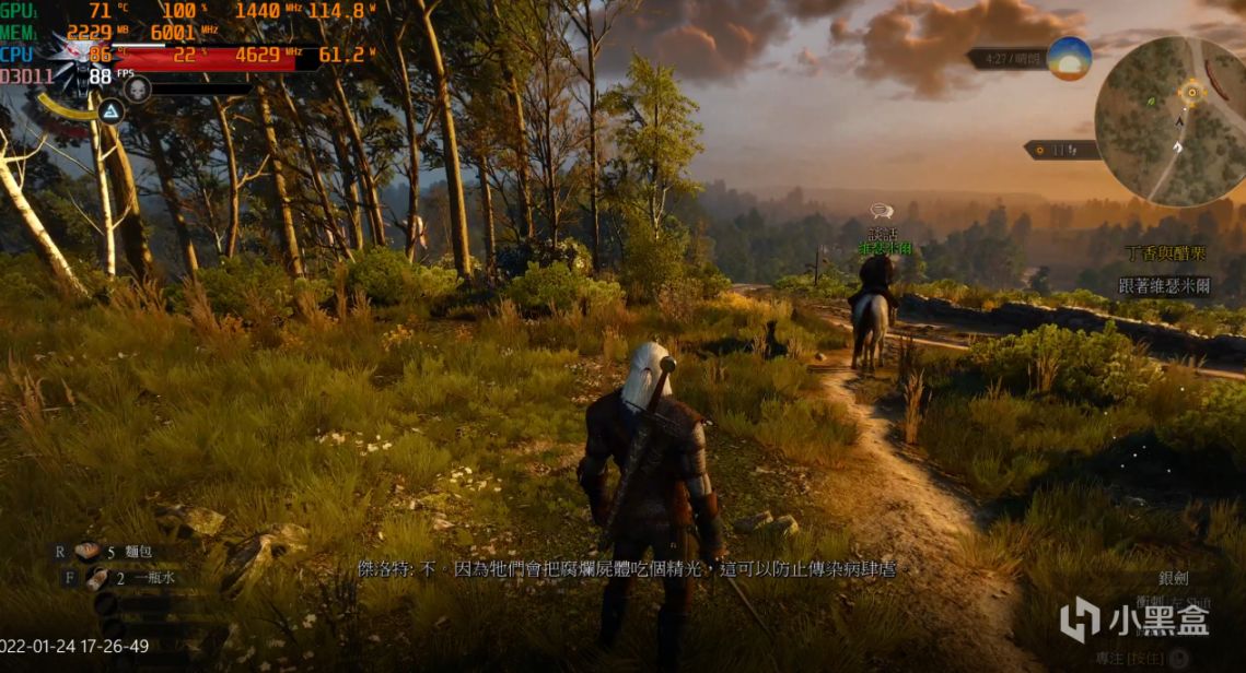 《巫师3》中,平均游戏帧数在88帧左右,此时CPU大核频率保持在4.6GHz以上,显卡1440MHz以上,功耗分别为61W和114W。