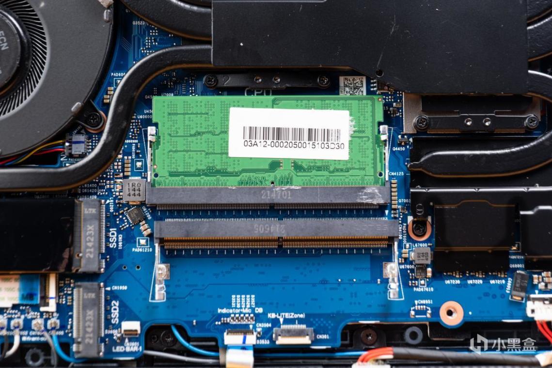 ROG枪神6标配双内存插槽,标配16GB DDR5-4800内存只用到了一个通道,但用户还是可以很方便的扩展到双通道。