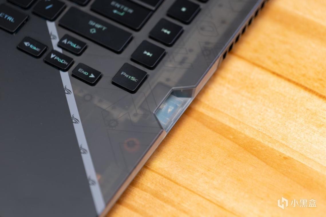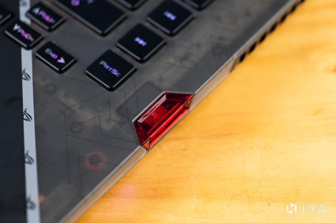 右侧的这个缺口是ROG钥石的安装位置,这个钥石通过NFC做数据交互,可以保存电脑设计,也可以作为加密空间的“钥匙”来使用,这也是ROG枪神系列一个非常有意思的差异化设计。