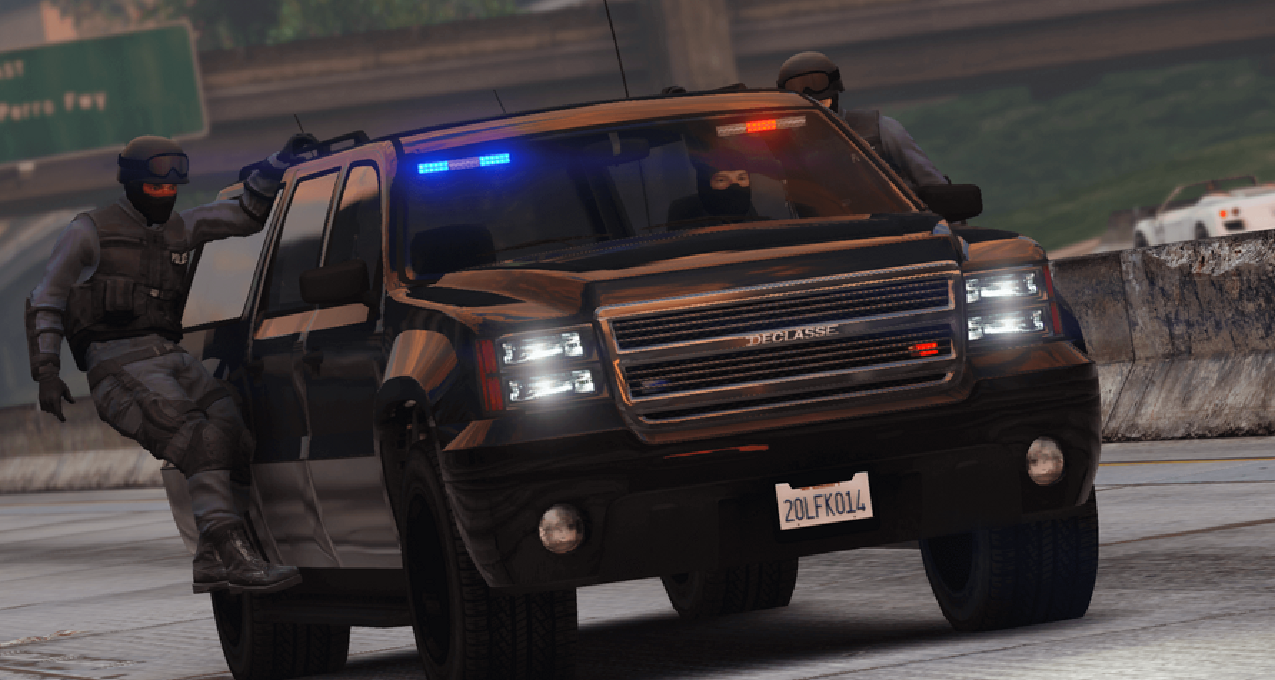 当通缉等级达到4/5星后,N.O.O.S.E.会派出驾驶警用弔王SUV[洛圣都市区]或警长SUV[布莱恩郡]的地面部队参与追捕. 同时会有特警从直升机上索降下来.
