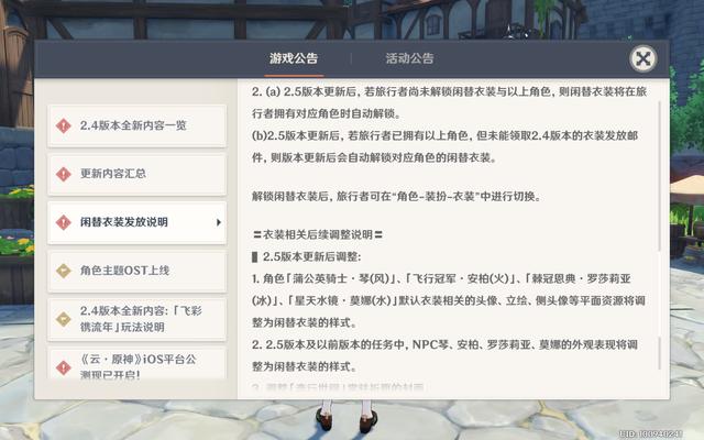 另外闲替衣着属于全民都能获取的,哪怕2.5版本之后获取到这4位角色,也会默认解锁相应的闲替衣着,算是给玩家的补偿方案。