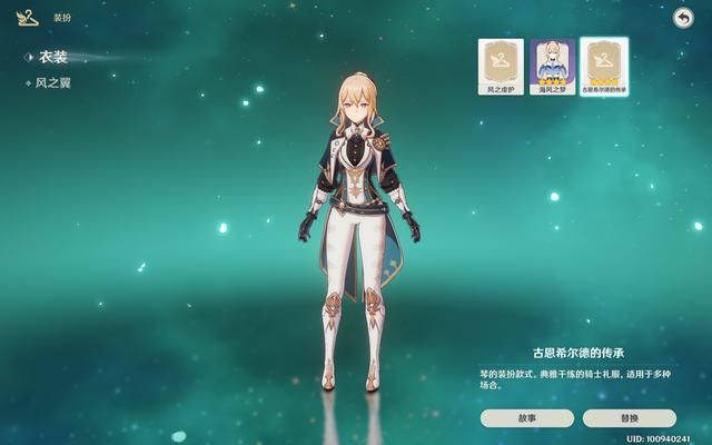 琴新皮:失去了自由的琴团长,如介绍一般适用于各种场合,唯独不再适用于玩家心中了,看完后boyue默默换回了夏日皮肤。