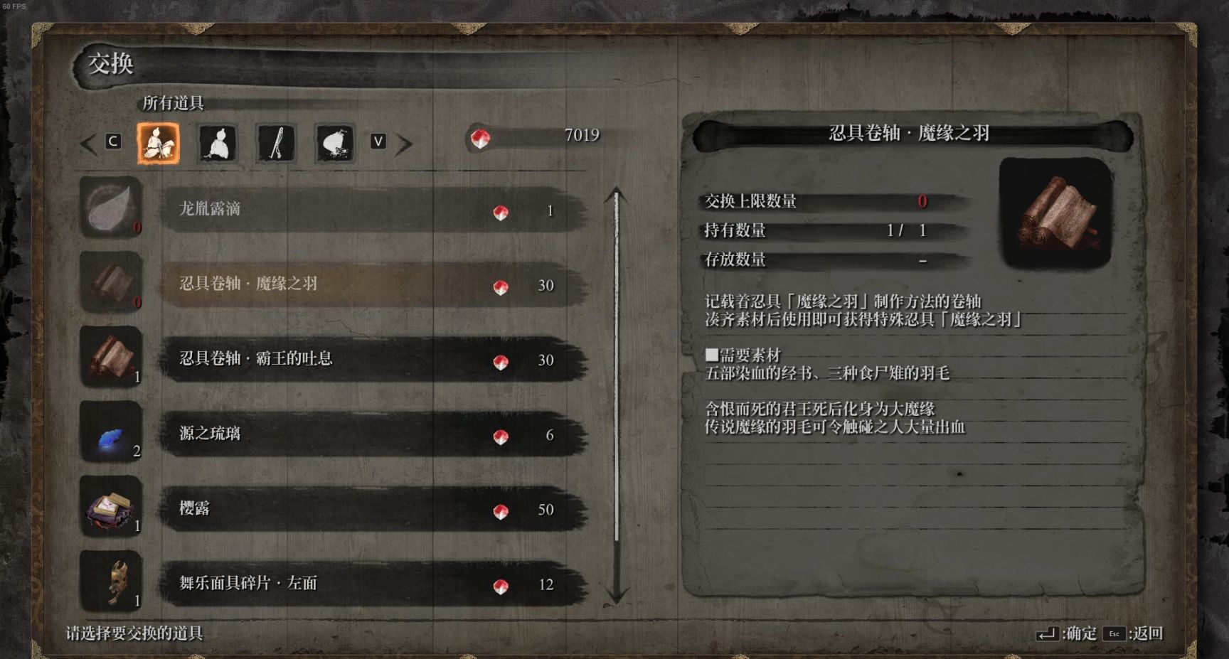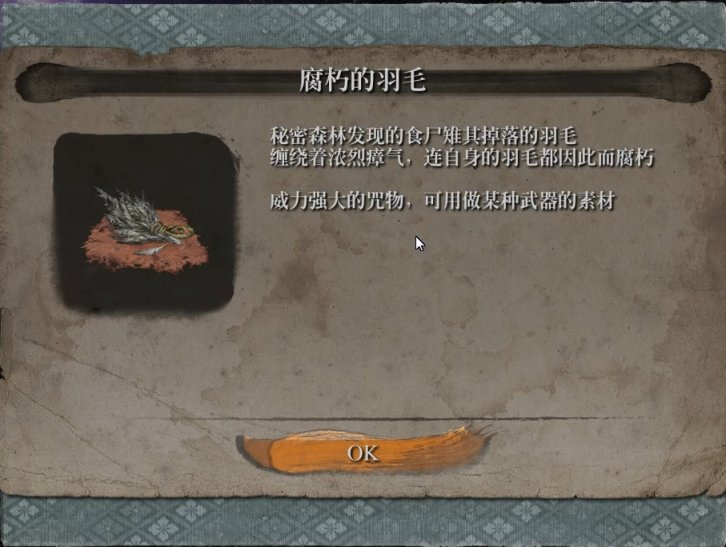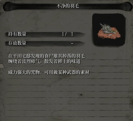 获取方式:魔缘的羽毛需要我们集齐忍具卷轴·魔缘的羽毛,和五卷染血经书与三种三种食尸雉的羽毛共八种材料