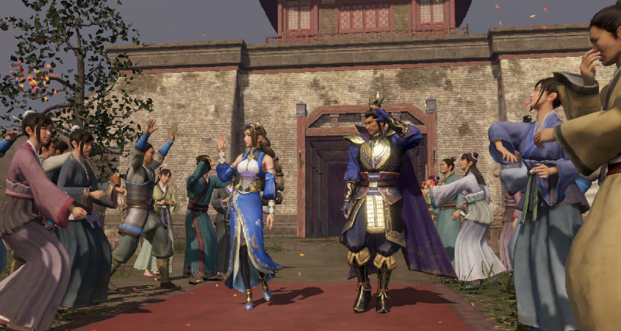 值得一提的是,虽然本作没有像前作《真・三国无双8》那样突出开放世界的概念,但依旧可以感受到相关的设计理念。比如政略玩法里有一个“散步”的模块,别看它名字起得随便(我寻思叫“巡游”“出行”啥的也好啊,“散步”真的有点怪怪的),但是却是和军事、人事、外交同等重要的模块。玩家需要通过这个模块和自己麾下以及在野武将的交流,包括招募和提升好感度这种重要操作,而提升好感度直接关系到玩家扮演的主公能否与对方结婚或是结拜为兄弟,所以这个“散步”模块是很重要的一个部分。在玩家出去散步的时候,可以独自一人在广袤的大地图里自由奔驰(记得按V召唤坐骑,比两条腿跑得快),也可以选择麾下一位武将与自己同行,去野外打点野兽或者山贼练练手升升级。这个大地图是真的大,而且好像真的做成了无缝的,只可惜野外很多地方都是空旷的,可交互的内容少之又少,野怪类型也不是很丰富。去野外逛多久都不会影响到政略玩法的时间推移,可能你平常处理个政令之后就直接下个月了,但是你如果在大地图散步的话,可以随便逛多久都行,跟自己心爱的武将刷山贼刷到饱都没问题。遗憾的是,野外大地图太空旷且缺乏变化,以至于逛了没一会就没啥好逛的了。