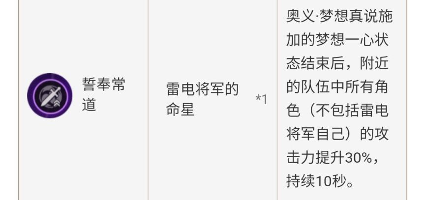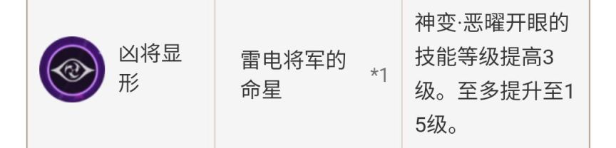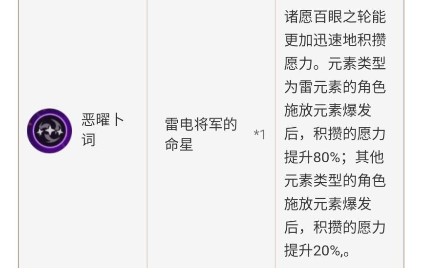 一命:恶曜卜词,提高雷神队伍中其他角色释放大招时增加的愿力层数