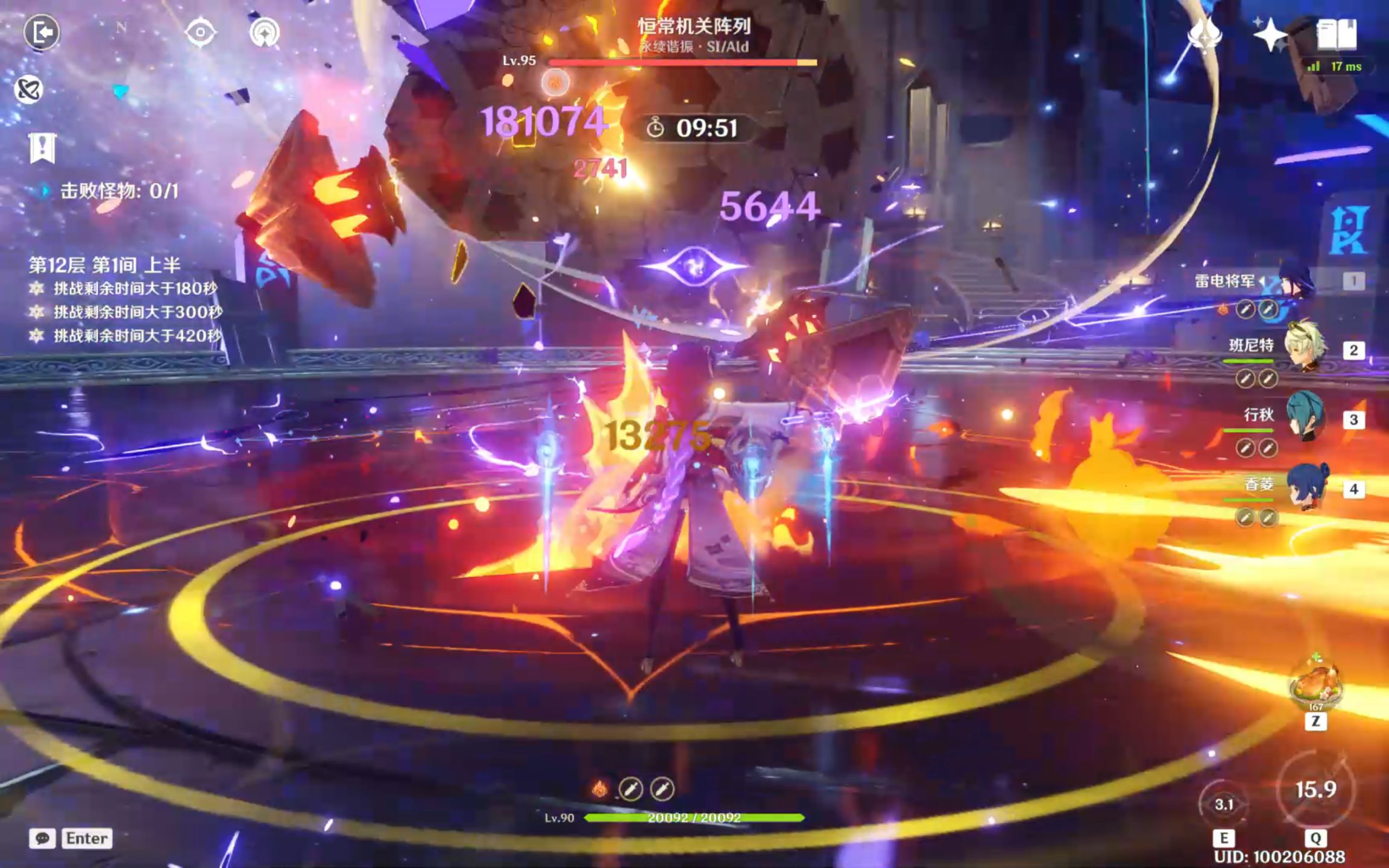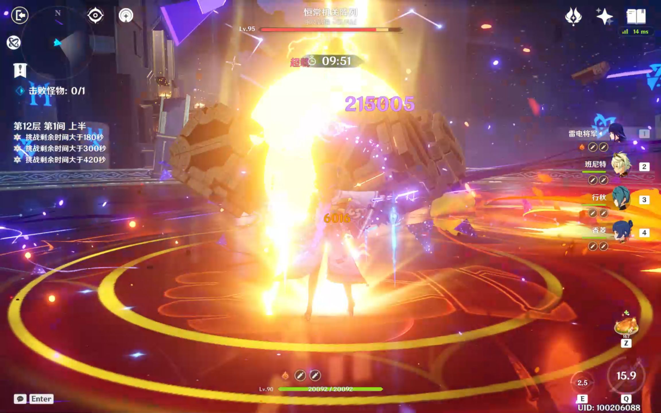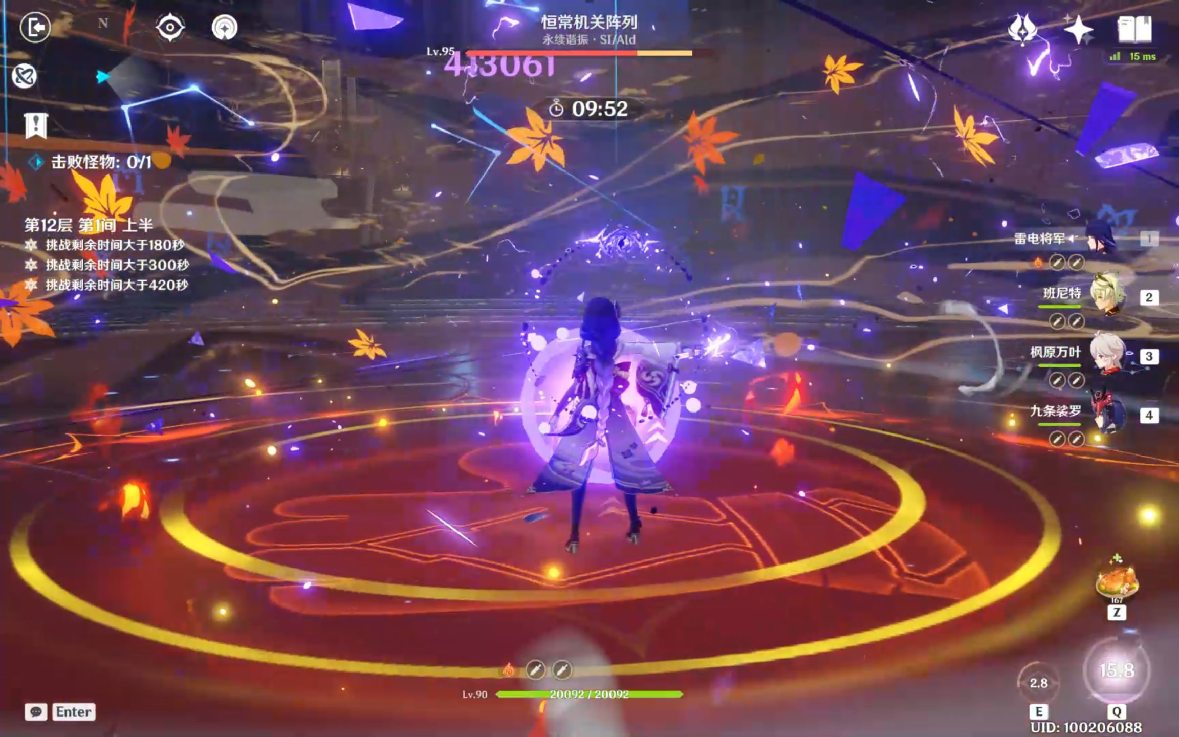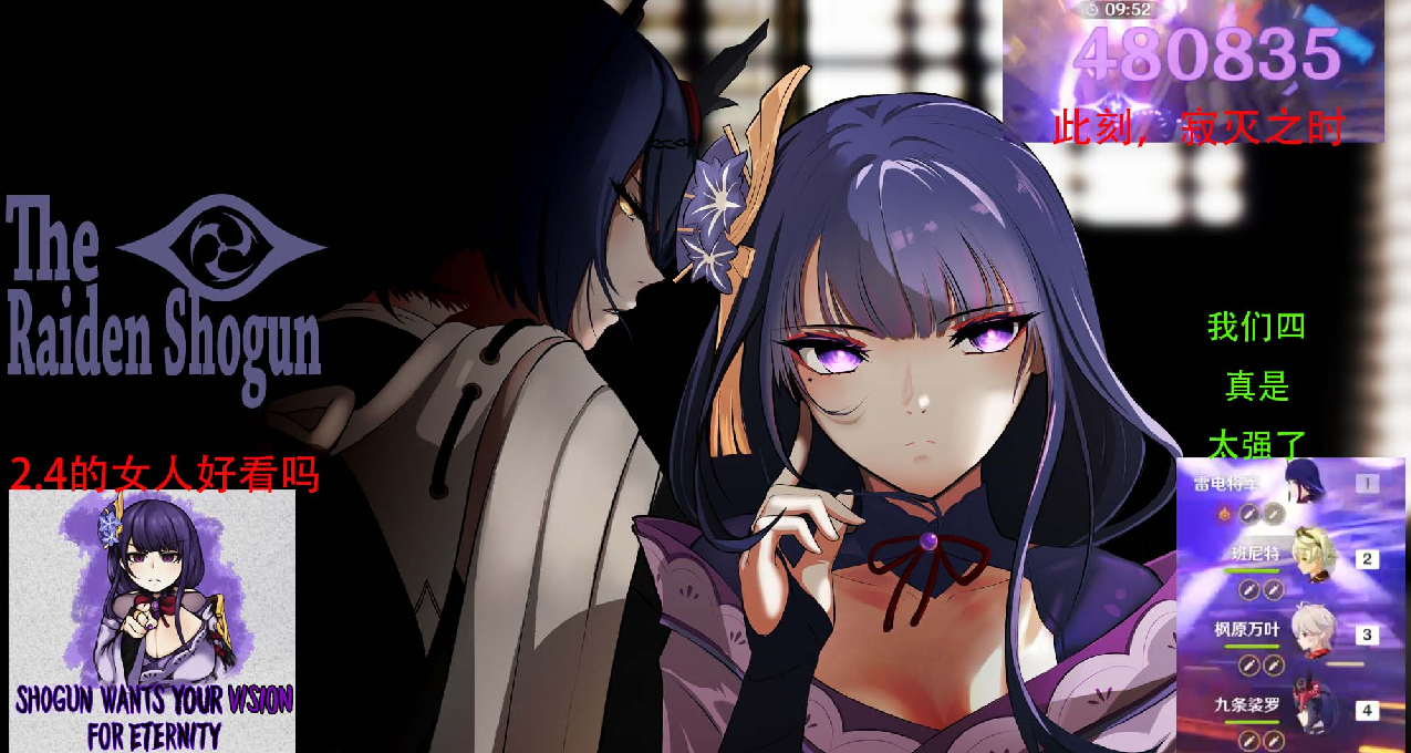 2、雷九万班(雷神,九条,班尼特,万叶)注:这种配队仅推荐二命及以上的雷神配合六命九条使用