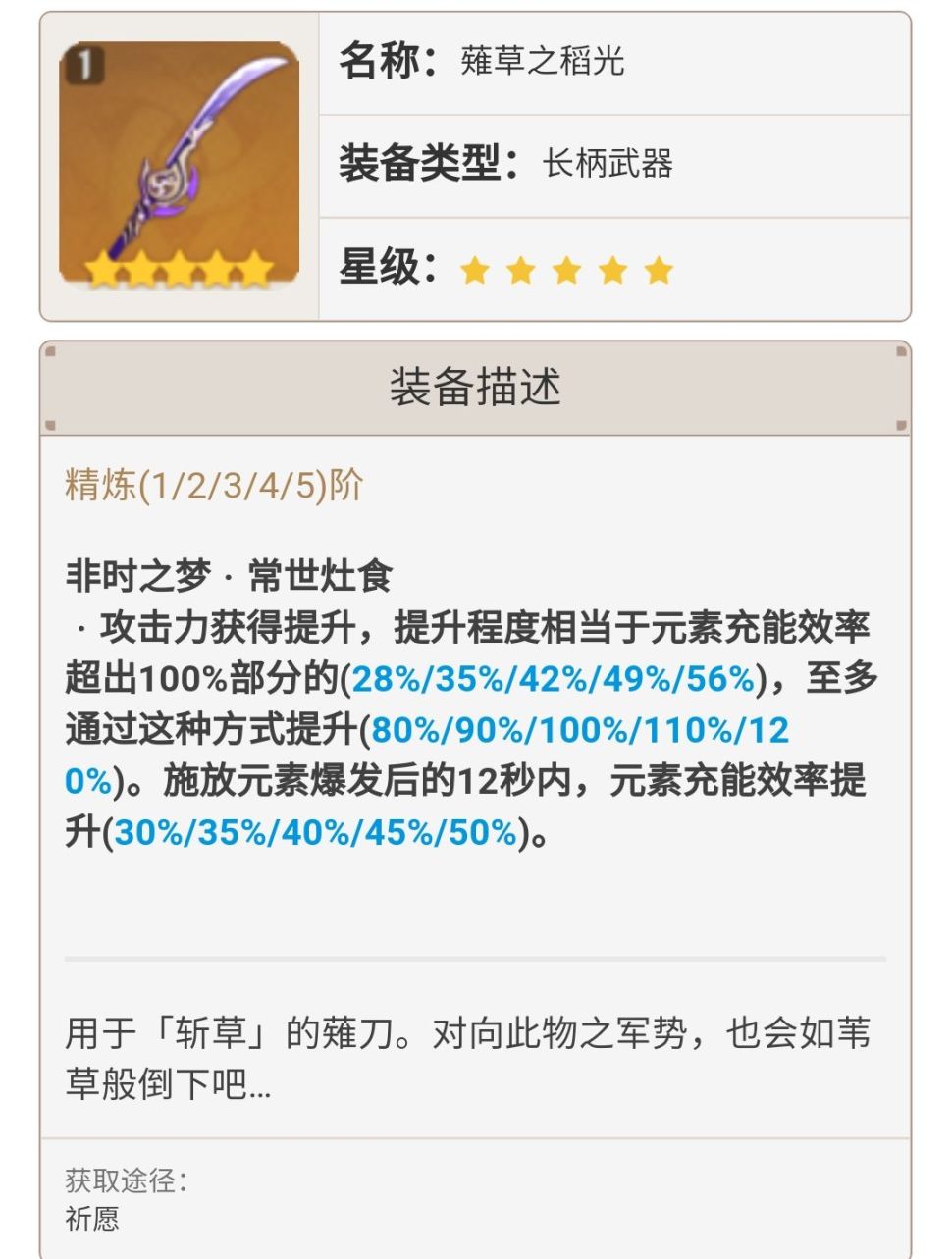 目前枪系最强武器之一,608的白值,55.1%的元素充能效率,对香菱、申鹤、雷神都有不低的提升,充能转攻击更是解决了副c对攻击力的需求