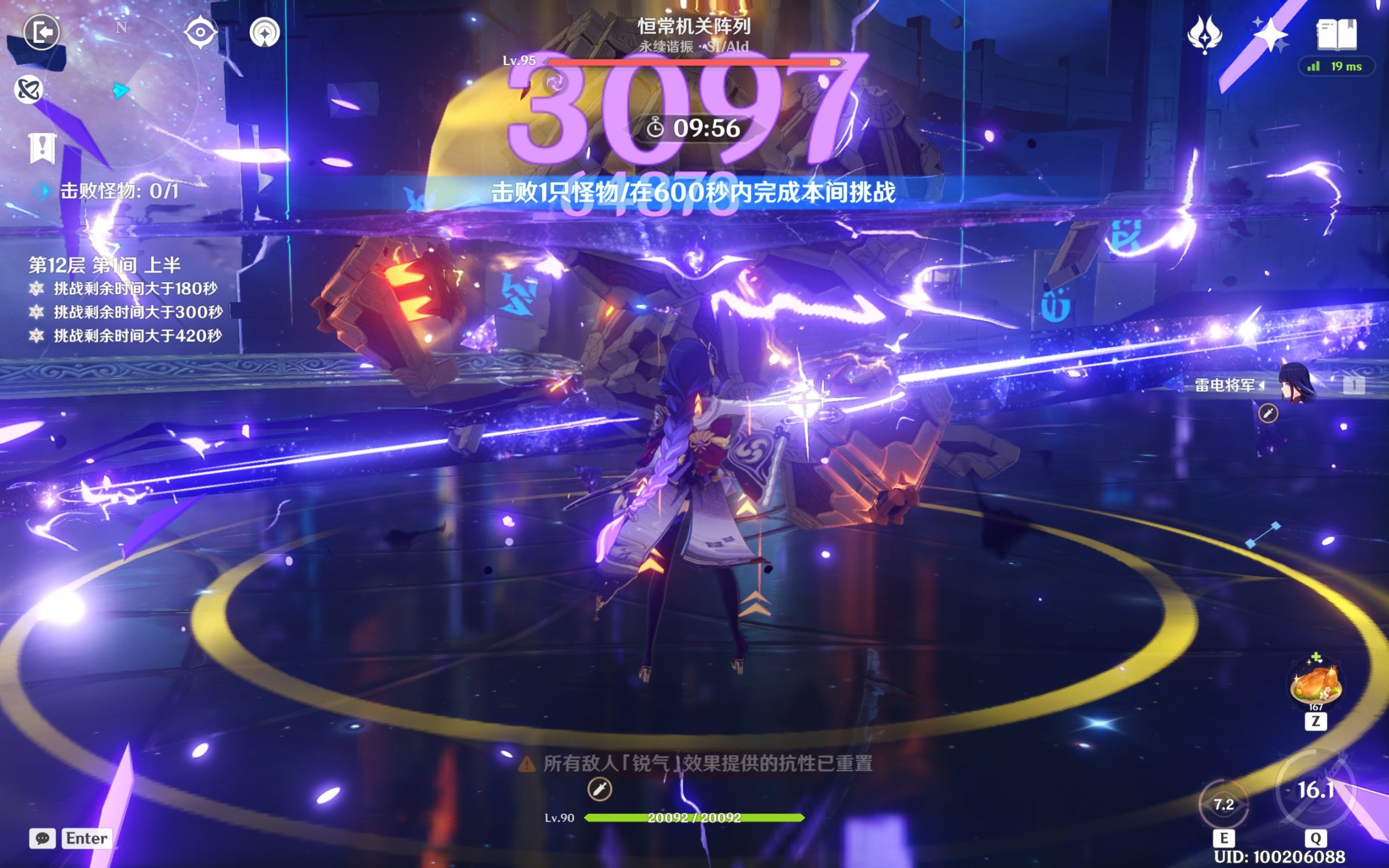 同样的圣遗物和配队,不同武器的辅助下的雷神大招伤害: