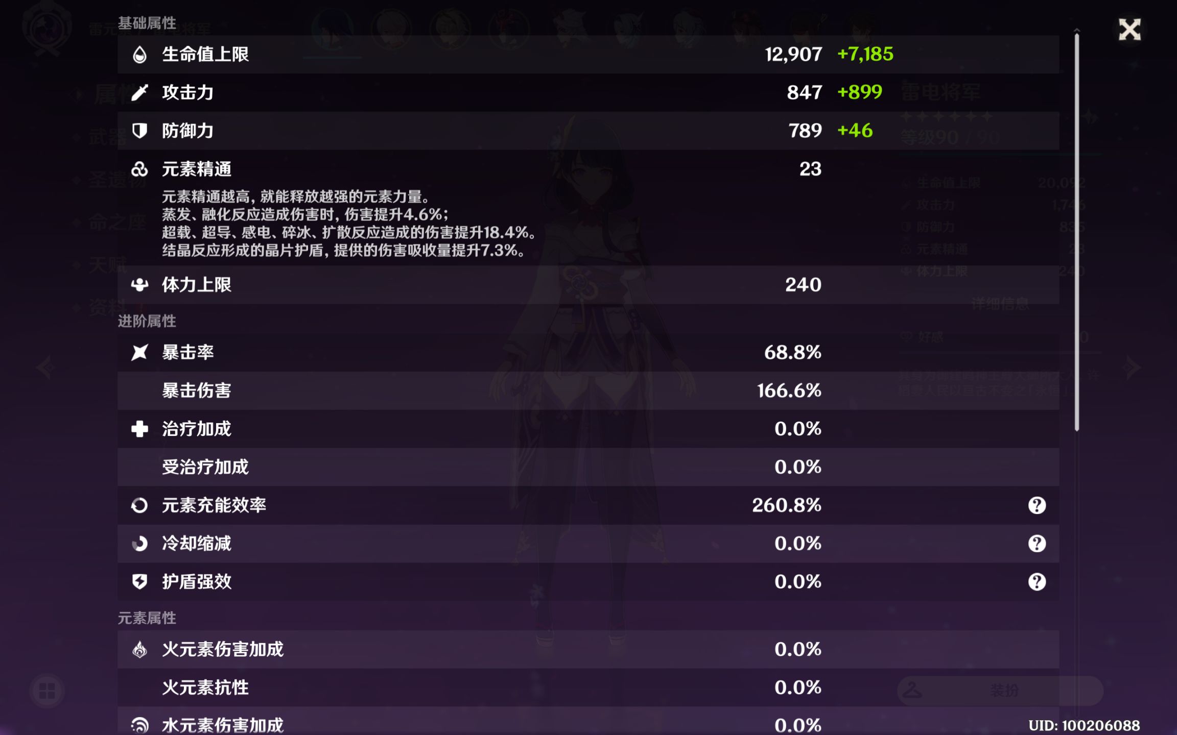 - 圣遗物主词条为充能沙(如果攻击沙也能做到270%/300%则另谈),攻击杯/雷伤杯(雷国更推荐攻击杯,雷九万班两者都可以,看最终面板),暴击头(你要是爆伤头也能50%暴击率当我没说)