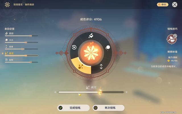 烟花:最后2个烟花也懒得弄完美了,反正不影响拿所有奖励,这边建议大家先随便制作2个把耐力上限先拉上去,再回来调整分数,会比较轻松,猛火与竭力可以多用,节省耐力。
