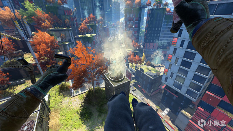 在本作中,滑翔伞将作为一种新的交通工具出现。飞行时间长,可以慢速滑翔,所以可以走捷径飞很远的距离。使用滑翔伞时,如果通过将空气吹向天空的“通风口”,飞行的滞空时间就会恢复,可以飞得更远。滑翔伞在“Central Loop”地区尤其有效,这里有许多摩天大楼排成一列。