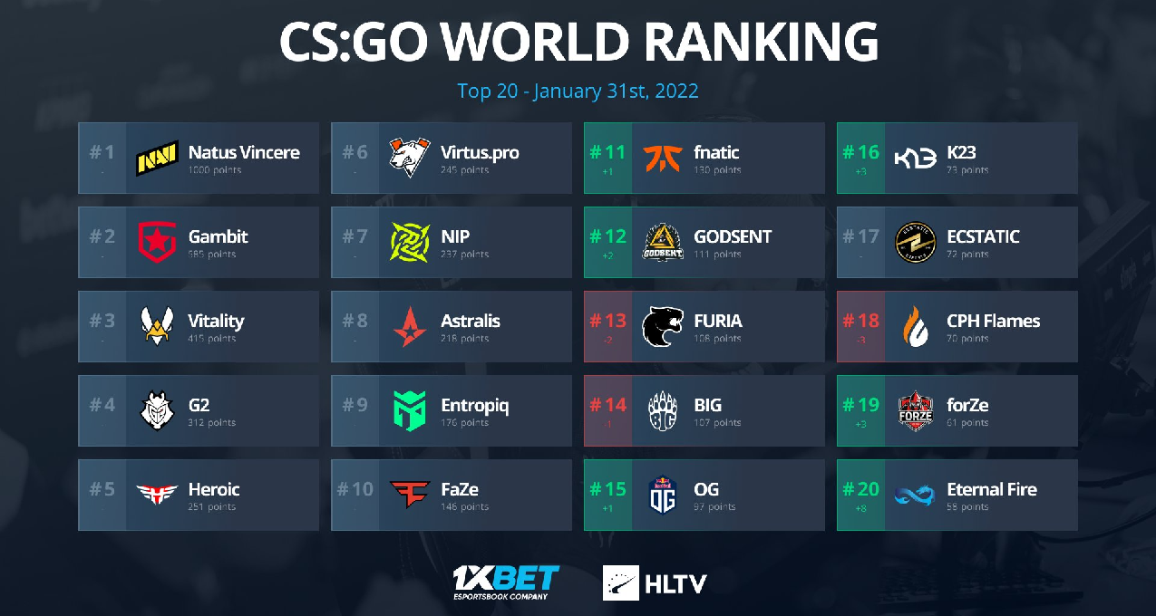 在BLAST春季小组赛的间隙,HLTV更新了其积分榜