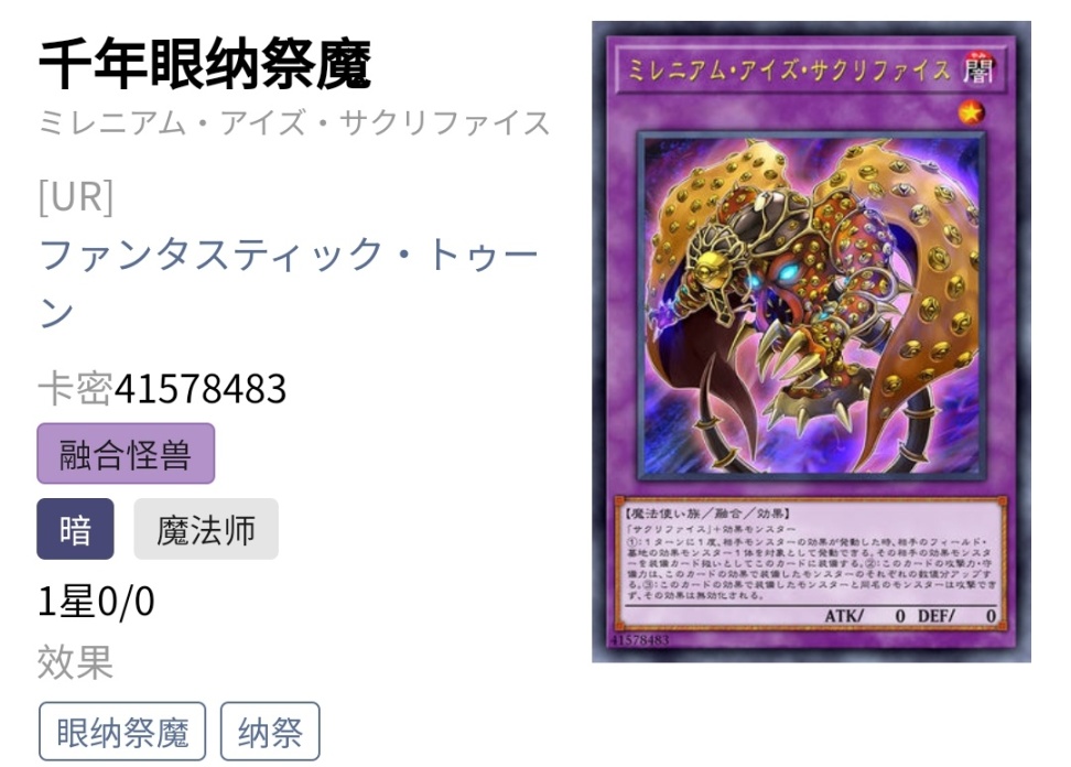 3.千年眼纳祭魔(ur卡)